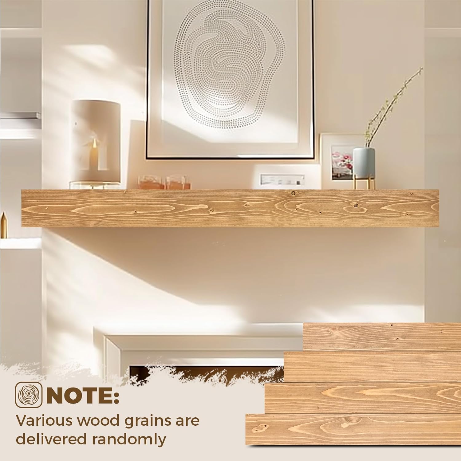 - Wall-Mounted Design: The fireplace mantels feature an elegant floating design, offering a clean and tidy appearance, making them the perfect choice for displaying decorations or storing daily items. These mantels are not only furniture, they are a lasting investment in the beauty of natural wood, carefully processed to suit your home even better