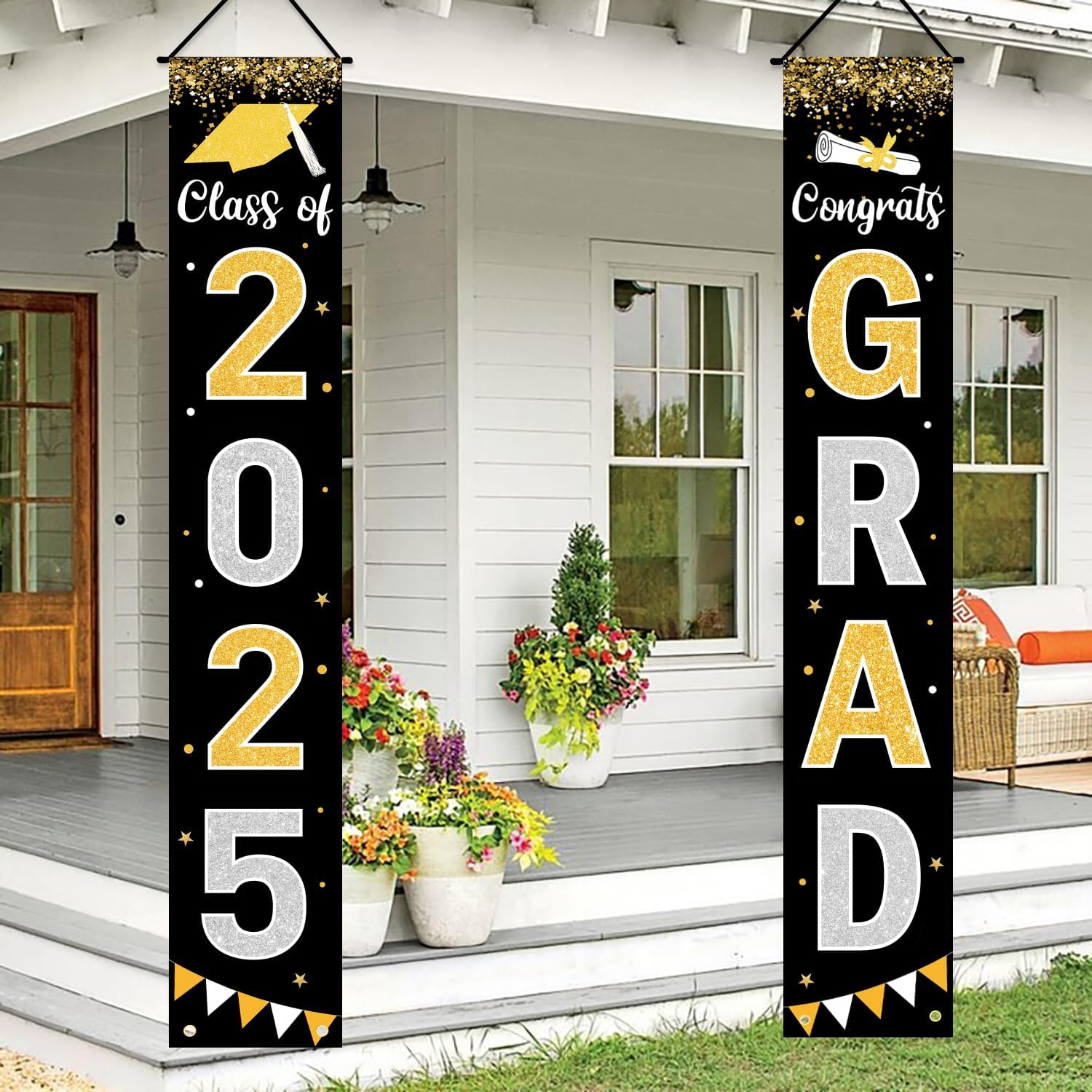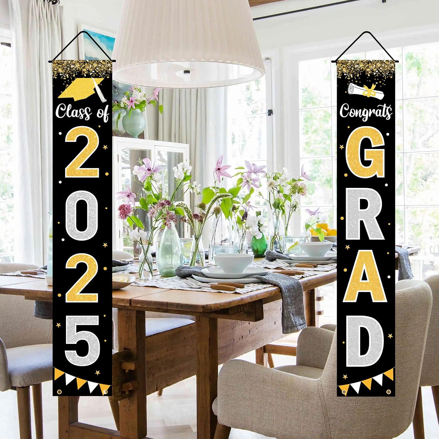 Graduation Decorations 2025 GRAD Banner Black Porch Door Sign Welcome Banner For Indoor Outdoor Wall Graduation Decorations Class of 2025