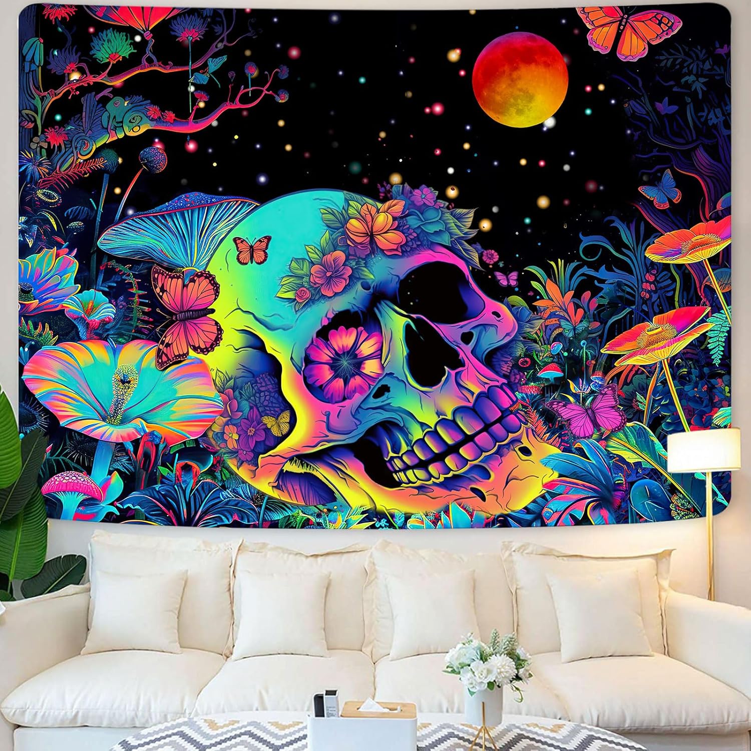 Xiaoput Skull Skeleton Tapestry for Bedroom, Glow in the Dark Black Light Poster, 60x40IN