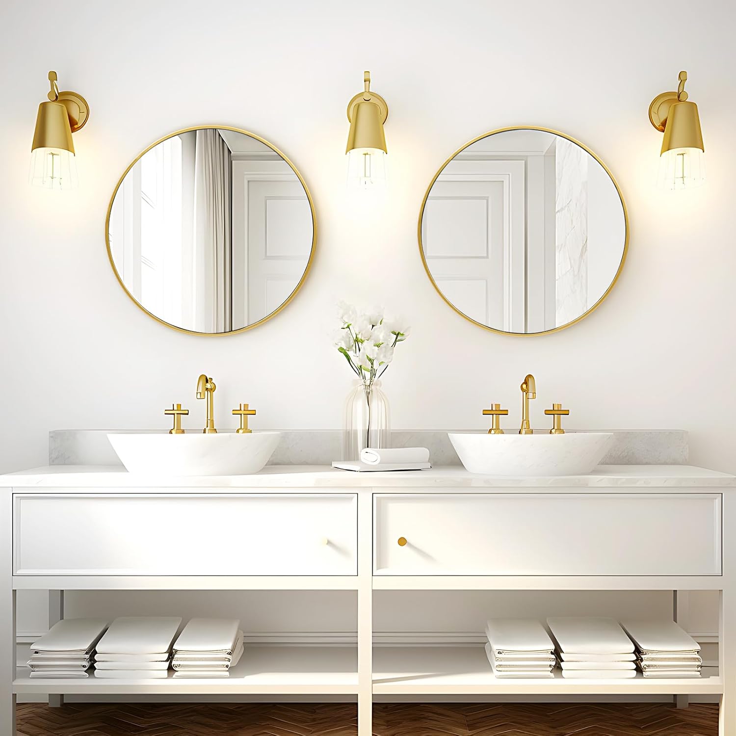 Fabuday Gold Circle Mirror for Bathroom - Small 18 Inch Round Mirror for Wall Decor with Golden Matte Frame, Living Room, Bedroom, Entryway Circular Mirrors