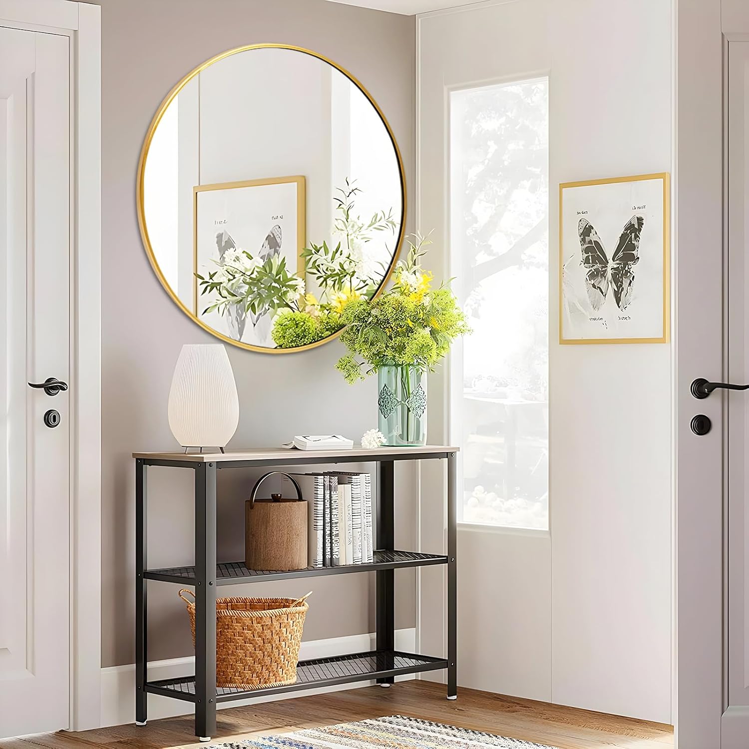 - Perfect Fit Interior Design - Great value and an excellent addition to your guest bathroom, which goes well with country chic inspired guest bathroom. And the simple round mirror is perfect fit for the entry way, bedroom, living room, baby nursery, office, which is a good wall decoration