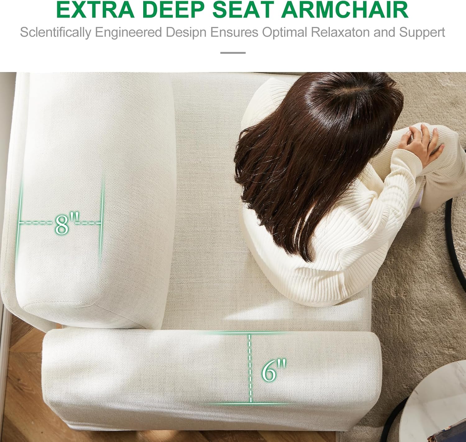 38.5 Oversized Accent Chair with Storage Beige, Single Modern Accent Sofa Chair with Arms for Apartment Living Room Linen(21" Deep Seat)
