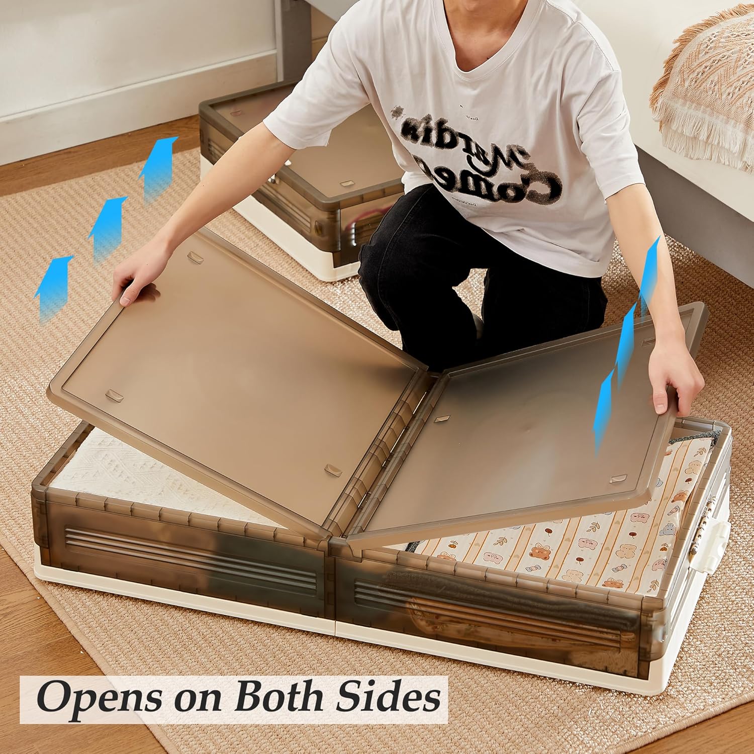 • 【Foldable Storage Boxes】Our storage bins with lids under bed are easy to assemble – simply unfold the four sides, connect them, and add the lid and wheels. When not in use, you can fold them and place under bed storage containers plastic in a corner or under the sofa, saving a significant amount of space.