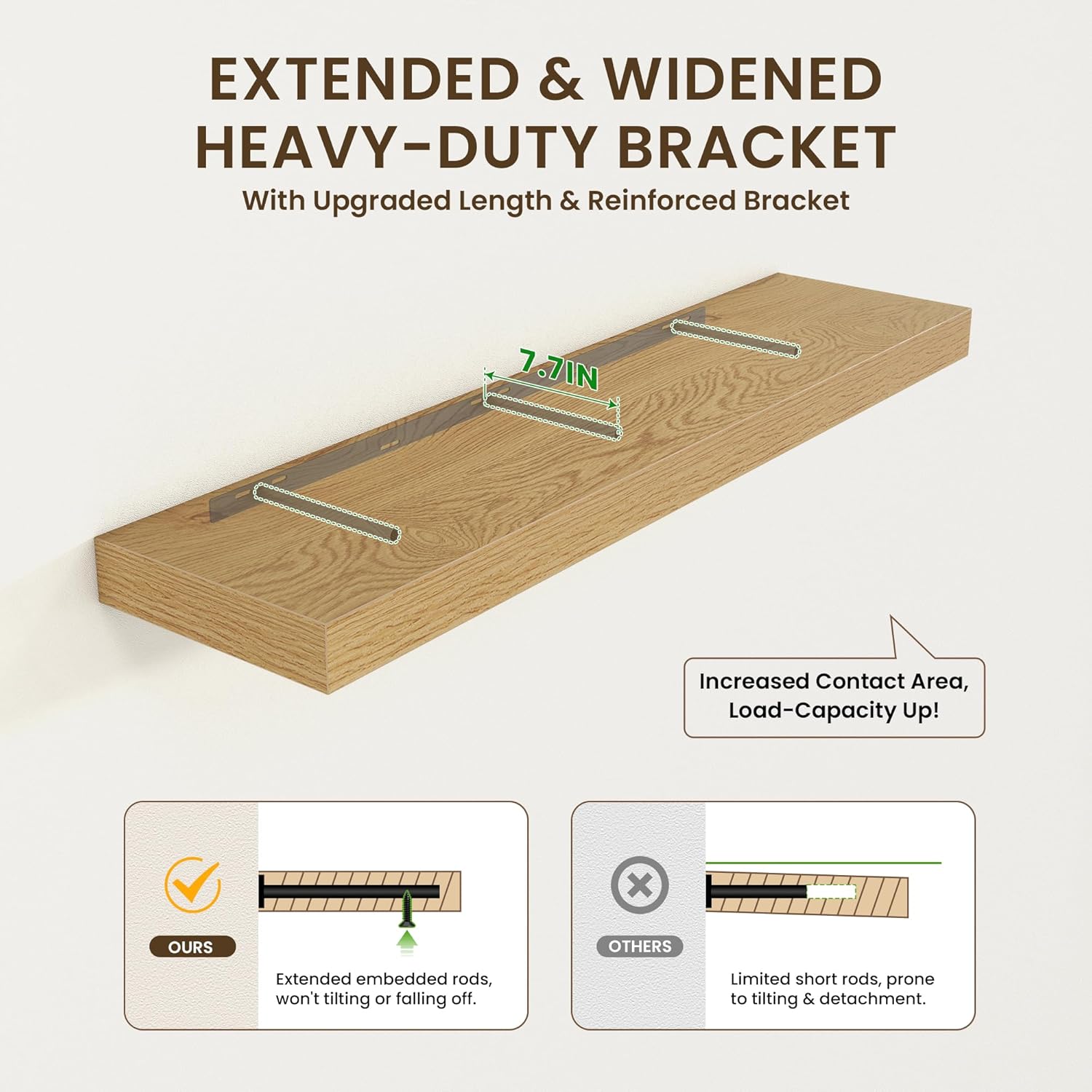- DEEPER & THICKER SHELF- Our floating shelves measure 48W x 11.6D x 2H, deeper and thicker than usual wall shelves, which create more storage and display space for your home