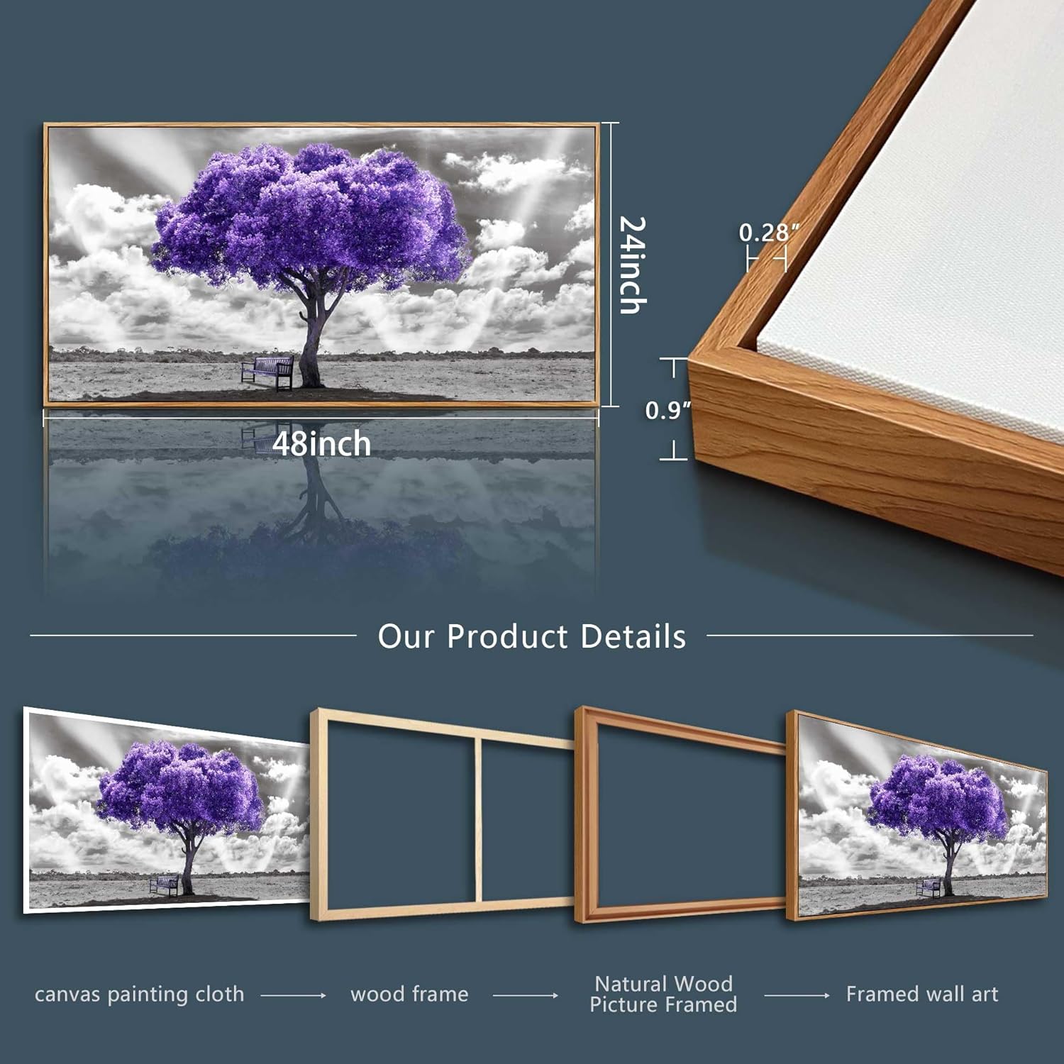 - 【FRAMED CANVAS WALL ART SIZE】Size Is :24x48inch (60x120cm)(Including The Outer Frame), total 1 Panel. Framed Wall Decor Art Wood Frame wall art.