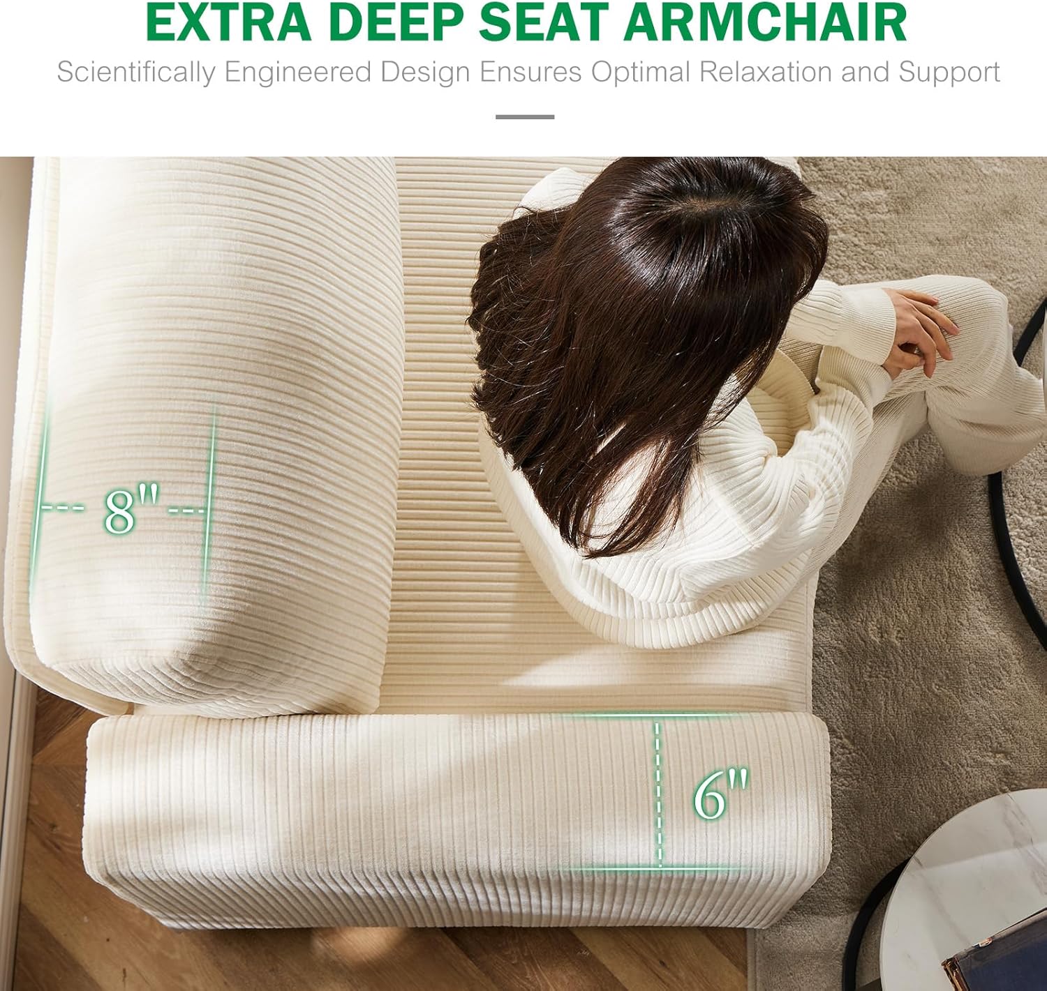 38.5 Oversized Accent Chair with Storage Ivory Corduroy Set of 2, Single Modern Accent Sofa with Arms Chair for Apartment Living Room (21" Deep Seat)