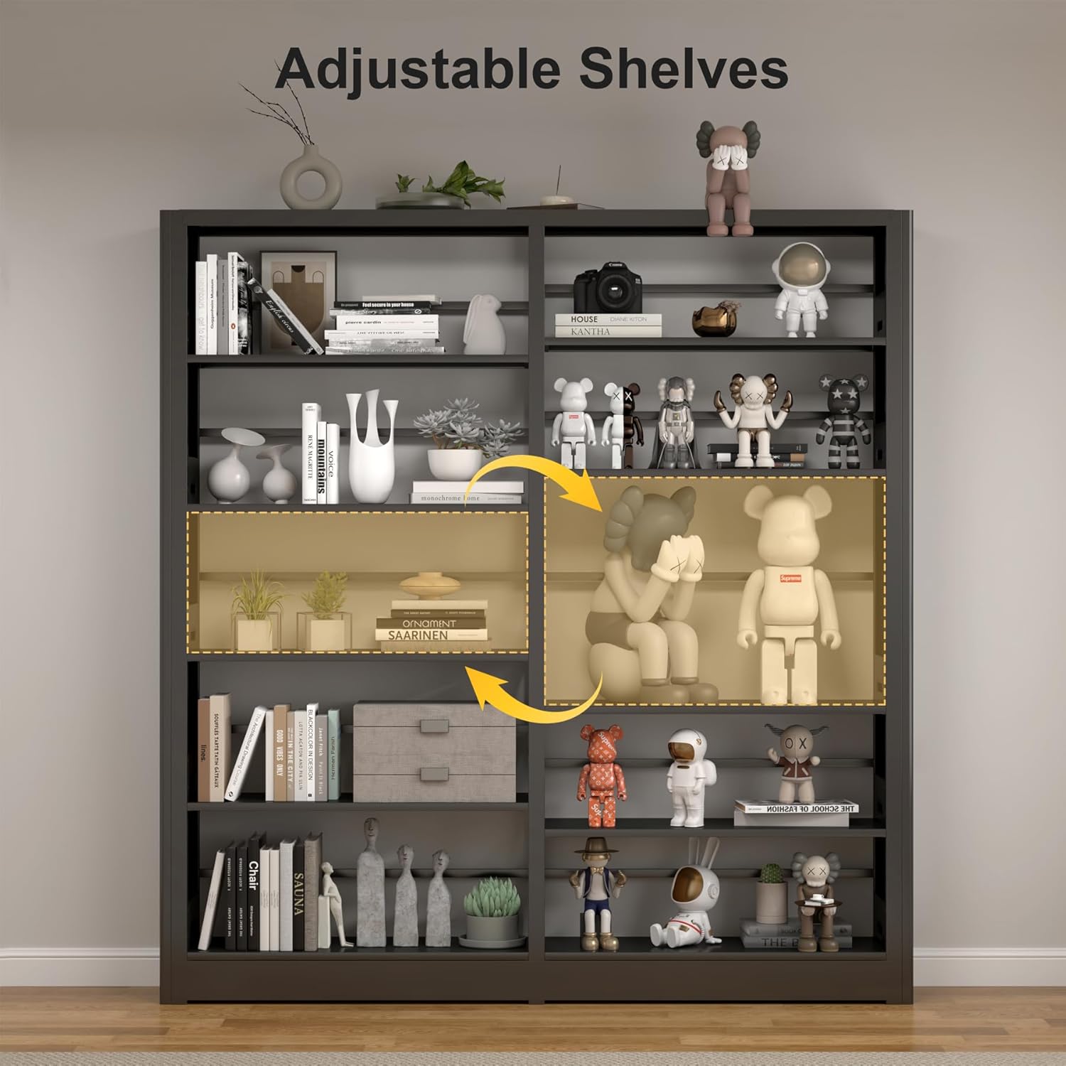 - ćAdjustable ShelvesćThe height of the shelf is adjusted according to your needs and can hold both normal size and large size books. You can also use it as a shelf for tools, toys, and display shelves.