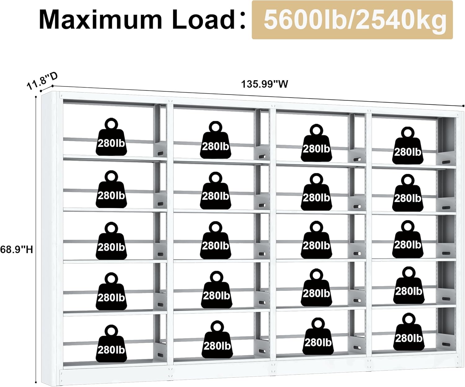 - ćLarge Load-bearing Steel BookshelfćMetal bookshelf Features:Heavy load bearing,Stable,Sturdy,Non-pollution,Long service life.Move multiple installation is not easy to damage.Our bookshelf is made of cold rolled steel and can hold up to 280 pounds per shelf. The ironck bookshelves are better load-bearing than wooden bookshelves and stronger than wooden bookshelves.