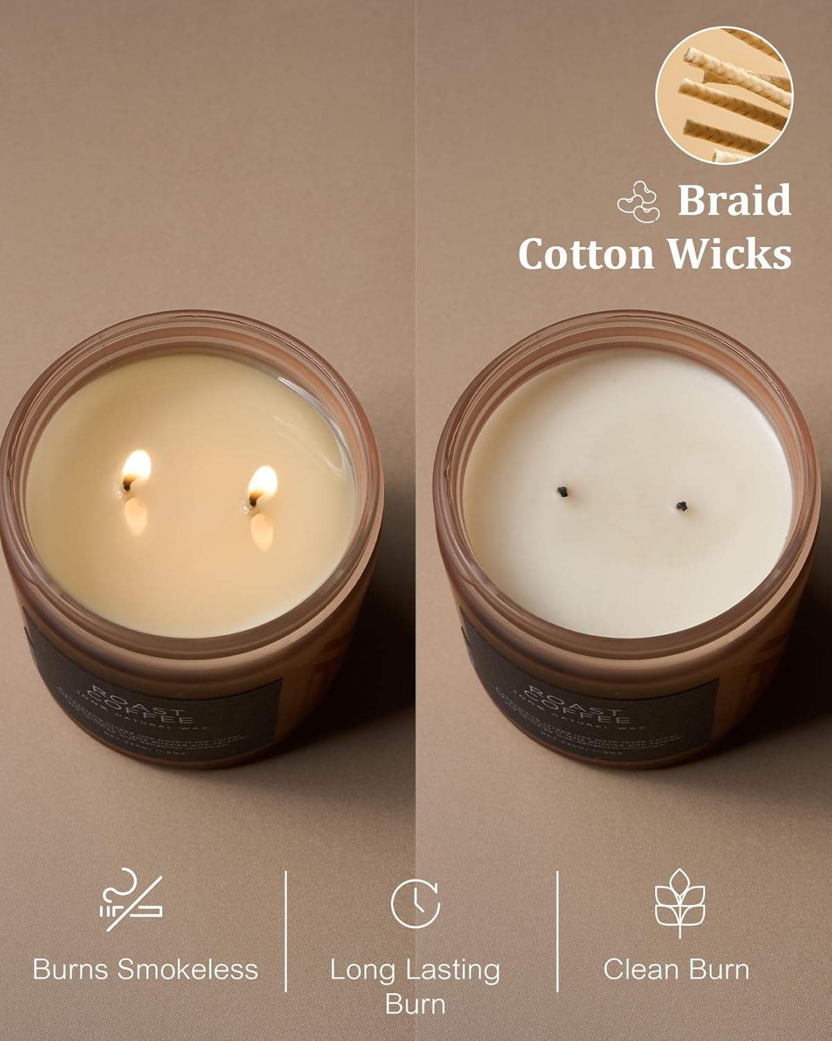 - 🌳 Clean Consistent & Even Burn - Using 2 American made lead-free cotton wicks for a even burn result. They're cotton flat braid wicks with paper throughout, providing increased rigidity and burn more consistently than 100% cotton wicks. Designed to reduce carbon buildup which leads to black soot.