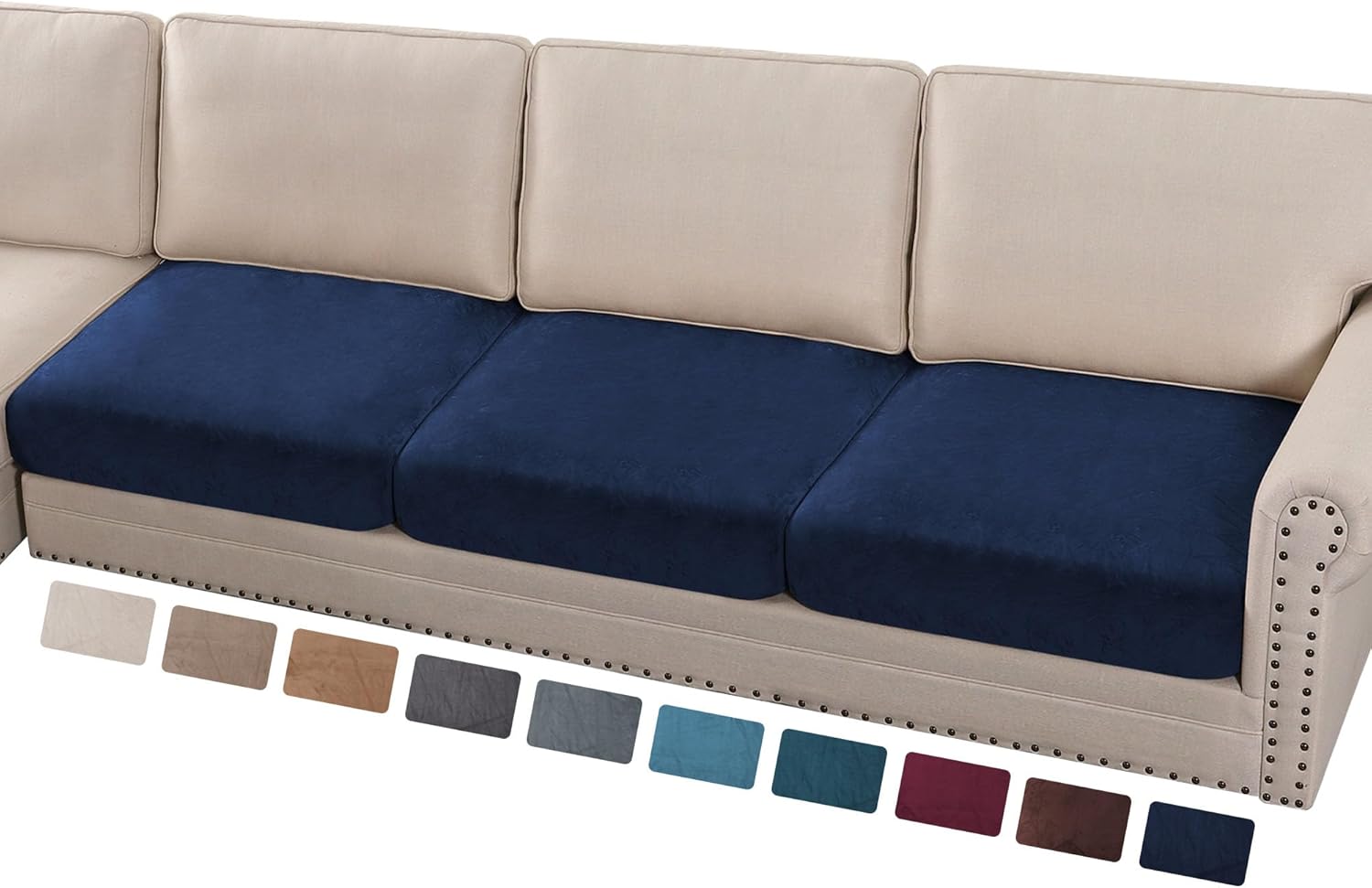 PrinceDeco Velvet Couch Cushion Covers 3 Pieces Velvet Separate Couch Cover Stretch Sofa Slipcover Washable Furniture Protector for Sectional Sofa(Each Width Up to 40", Navy)