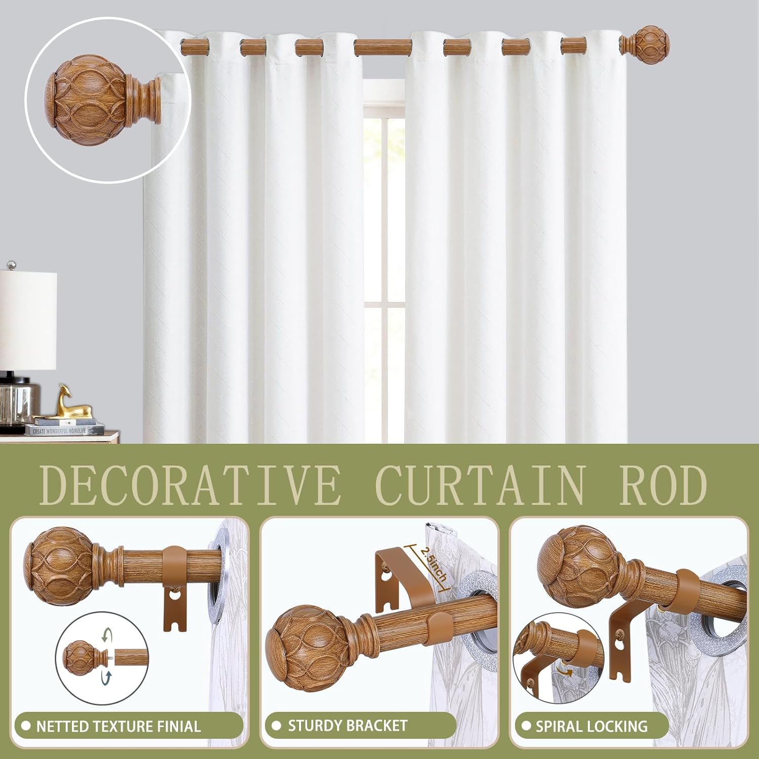 Wood Curtain Rods for Windows 66 to 120 Inch(5.5-10ft),1 Inch Adjustable Curtain Rod,Heavy Duty Curtain Rods,Wooden Netted Texture Drapery Rods,Single Window Curtain Rod 66-120",Brown Wood