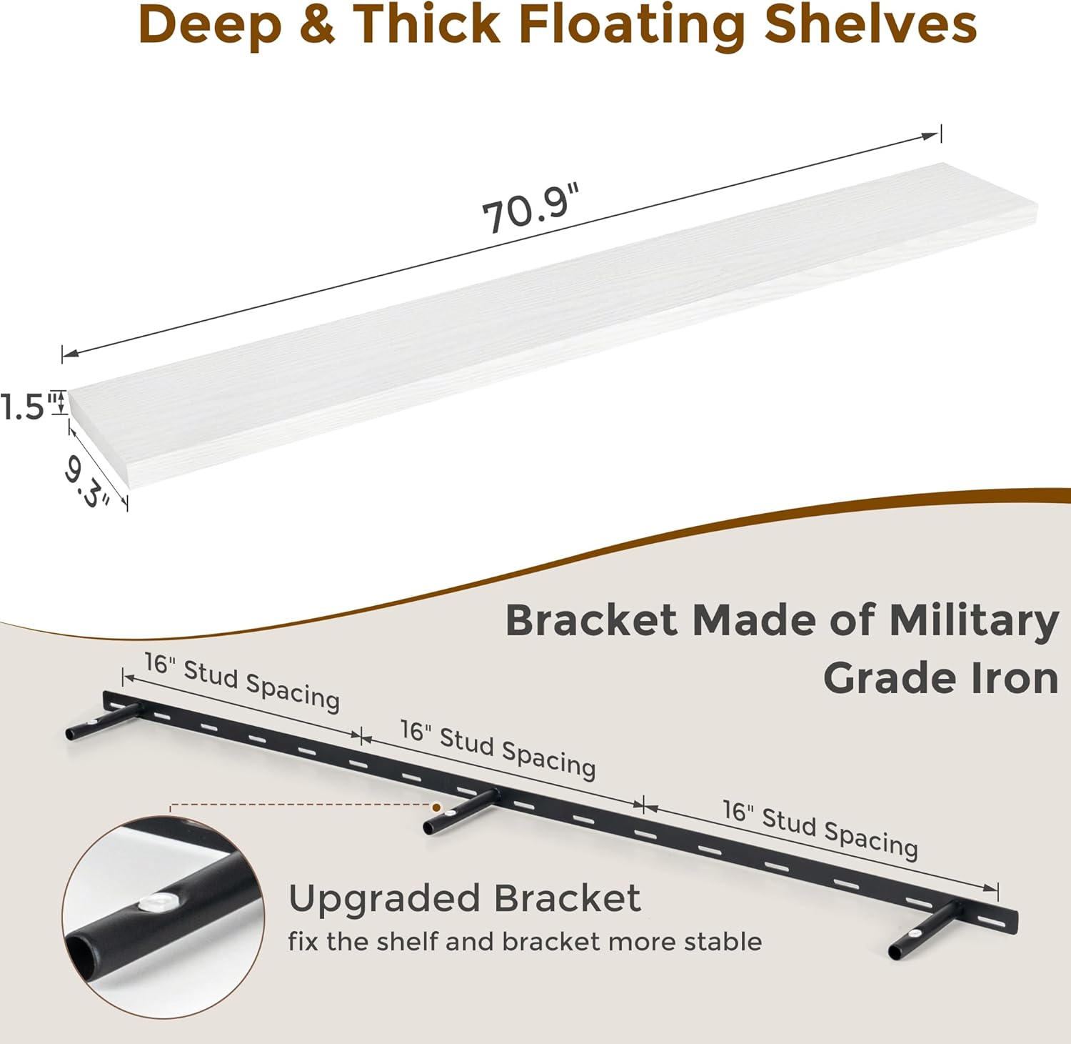72 Inch Floating Shelves White, 72 x 9 Rustic Wooden Fireplace Mantel, 9 Inch Floating Shelf for Wall, Farmhouse Wall Shelves for Home Storage & Display