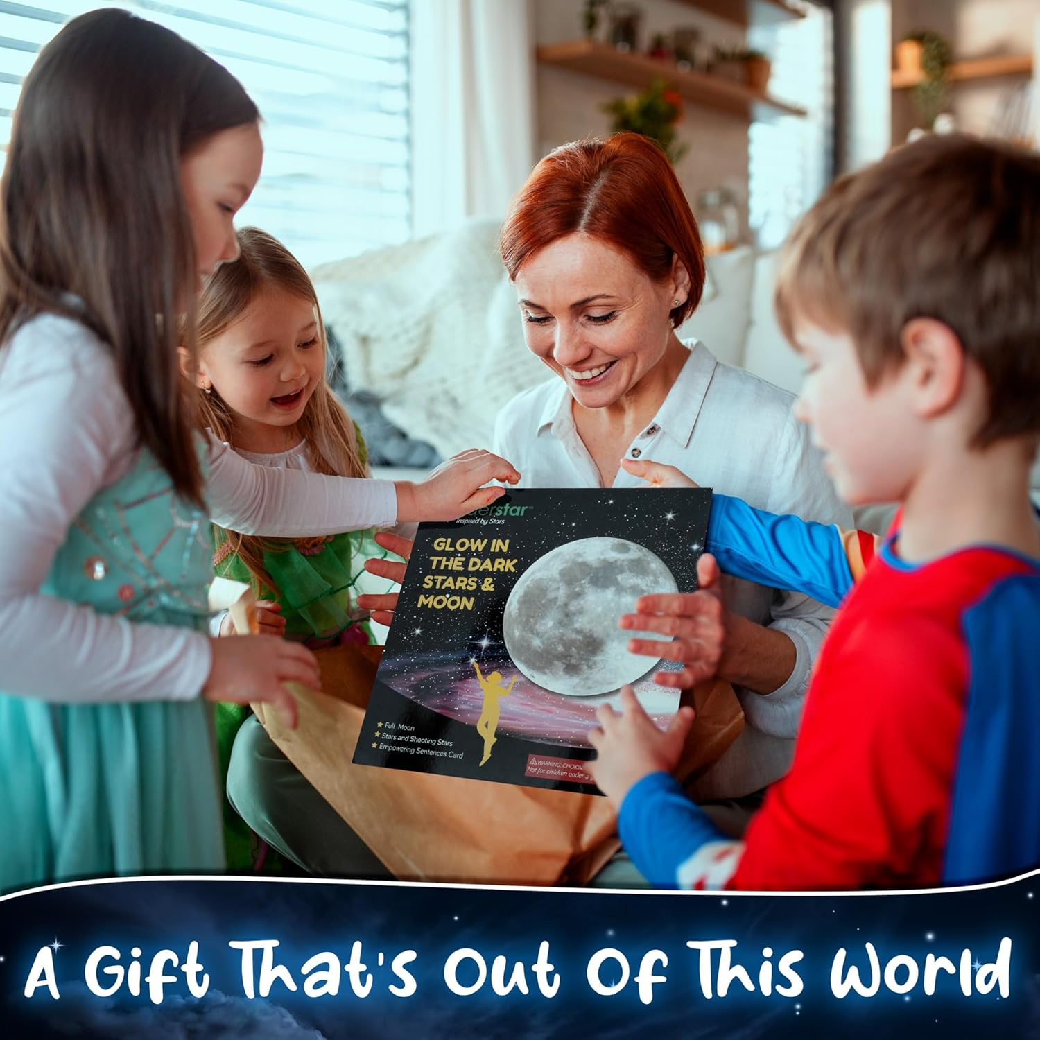 - A GIFT THAT’S OUT OF THIS WORLD – Looking for the perfect gift for boys or girls, Halloween, Christmas? - Liderstar’s glowing stars kit. In addition to 200 brilliant stars and shooting stars, we’ve included full moon , and a FREE affirmation card to build strong bonds, foster healthy relationships. And to top it off, the entire set arrives in a beautiful old record style package, making it the perfect present for stargazers and curious spirits of all ages