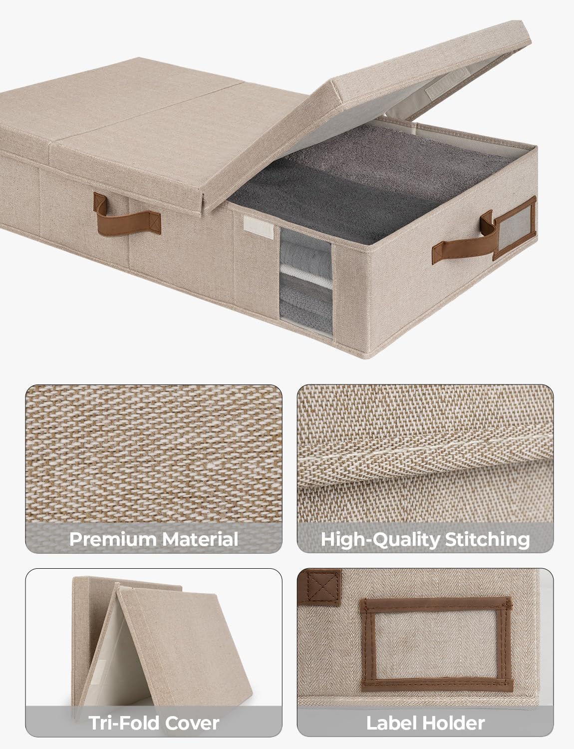- Multi-Functional & Efficient: Made from premium fabric and high-quality stitching, the underbed storage organizers are sturdy and perfect for various storage needs. Whether for organizing your bedroom, dorm room, or living room, these containers can maximize underbed space and serve as an efficient solution to clutter.
