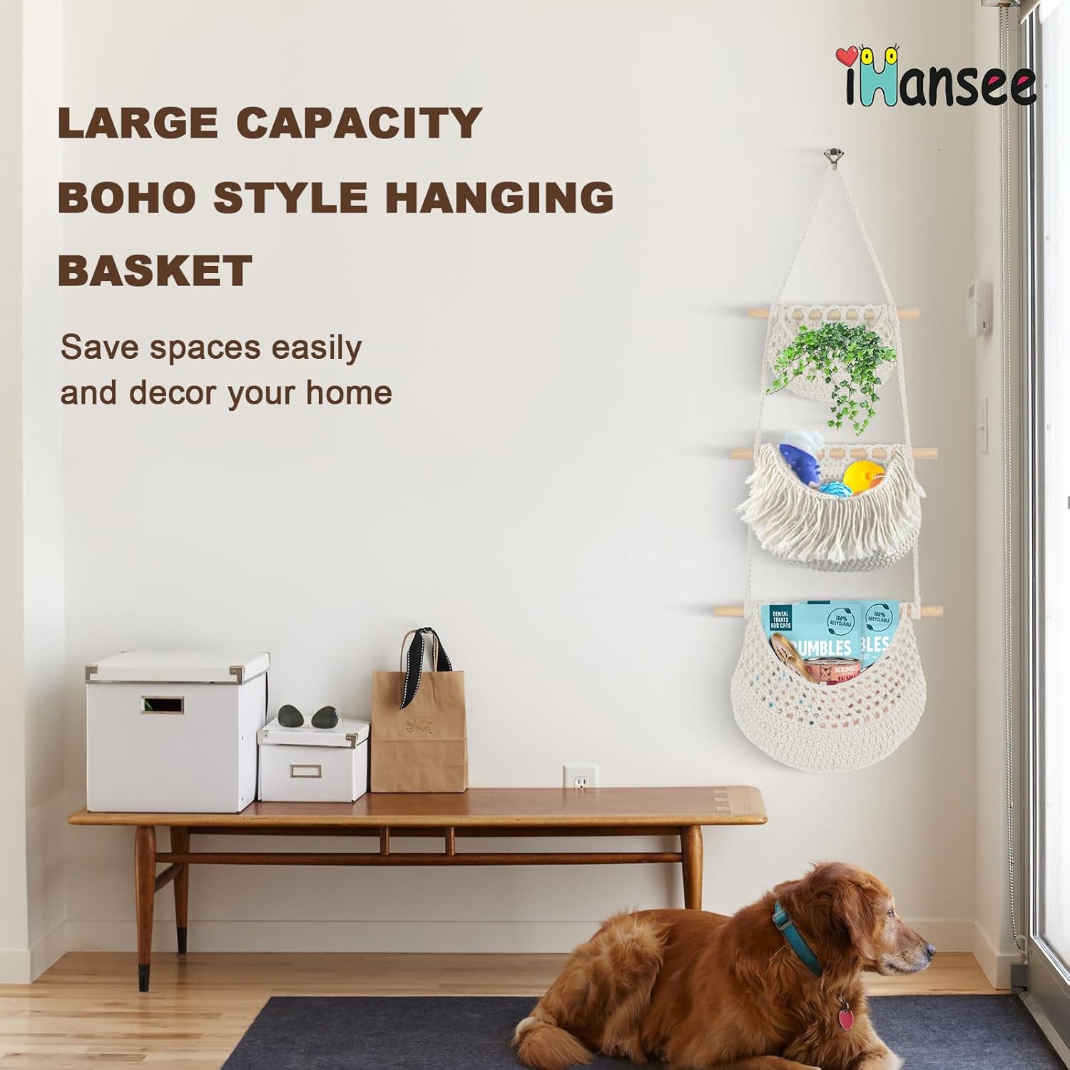 - 【Large Capacity & Wide Openings】 The hanging fruit holder with 3 different sizes are deeper and larger capacity, allowing you to hold more than any other fruit holder. Each end of hanging basket is attached to a natural wooden stick with a 0.6-inch diameter, providing a sturdy support with large weight capacity. Plus, the upgraded wide opening is designed for convenient access and maximizes airflow for fruits and vegetables to keep them fresh effectively.