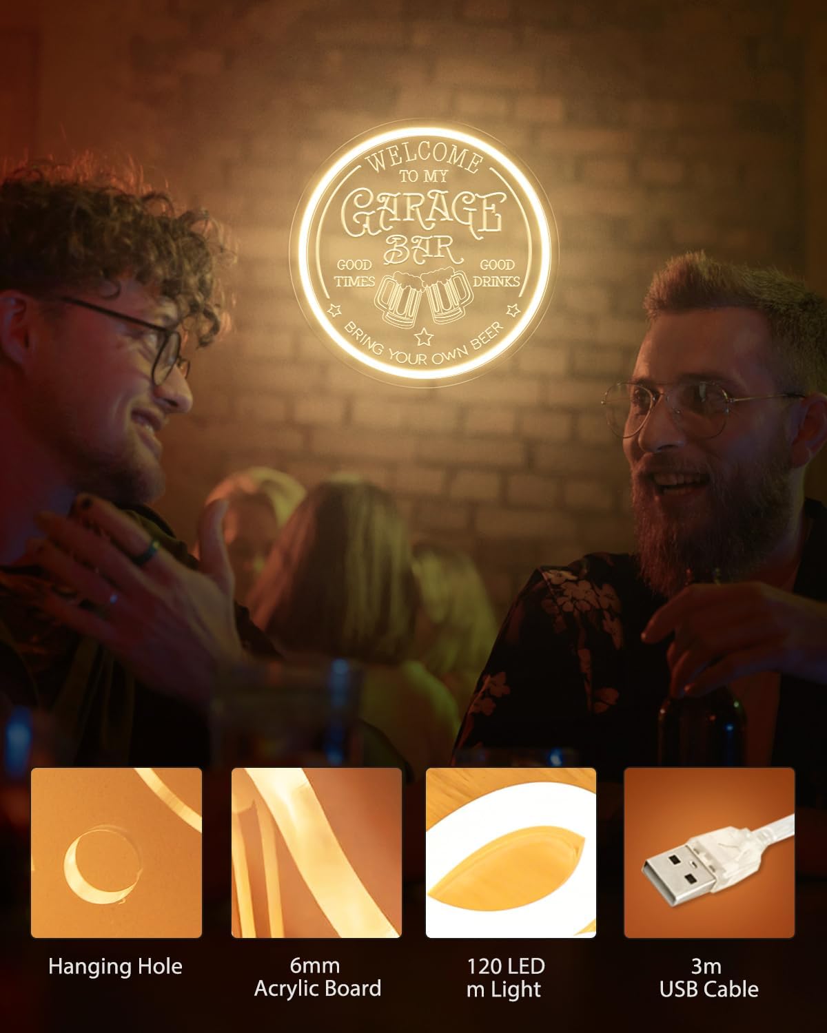Garage Bar LED Neon Sign for Wall Art Decor, Dimmable Garage Light Up Sign for Man Dad Gifts, Neon Lights Bar Signs for Home Bar Pub Man Cave Bistro Birthday Camping Party