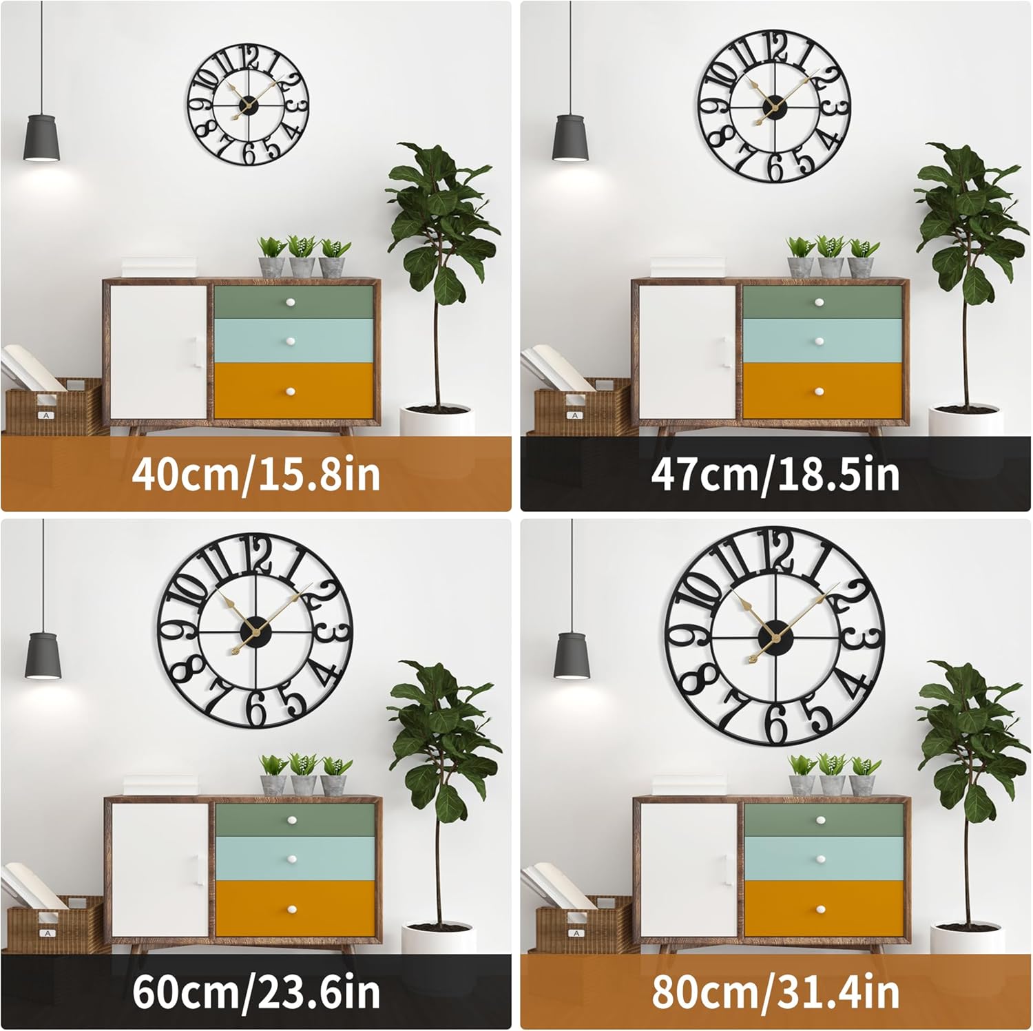Large Wall Clock for Living Room Decor - 100cm/ 40 Inch Nearly Silent Non-Ticking Metal Wall Clocks Battery Operated, Vintage Decorative Modern Wall Clock for Bedroom, Office, Farmhouse Decor