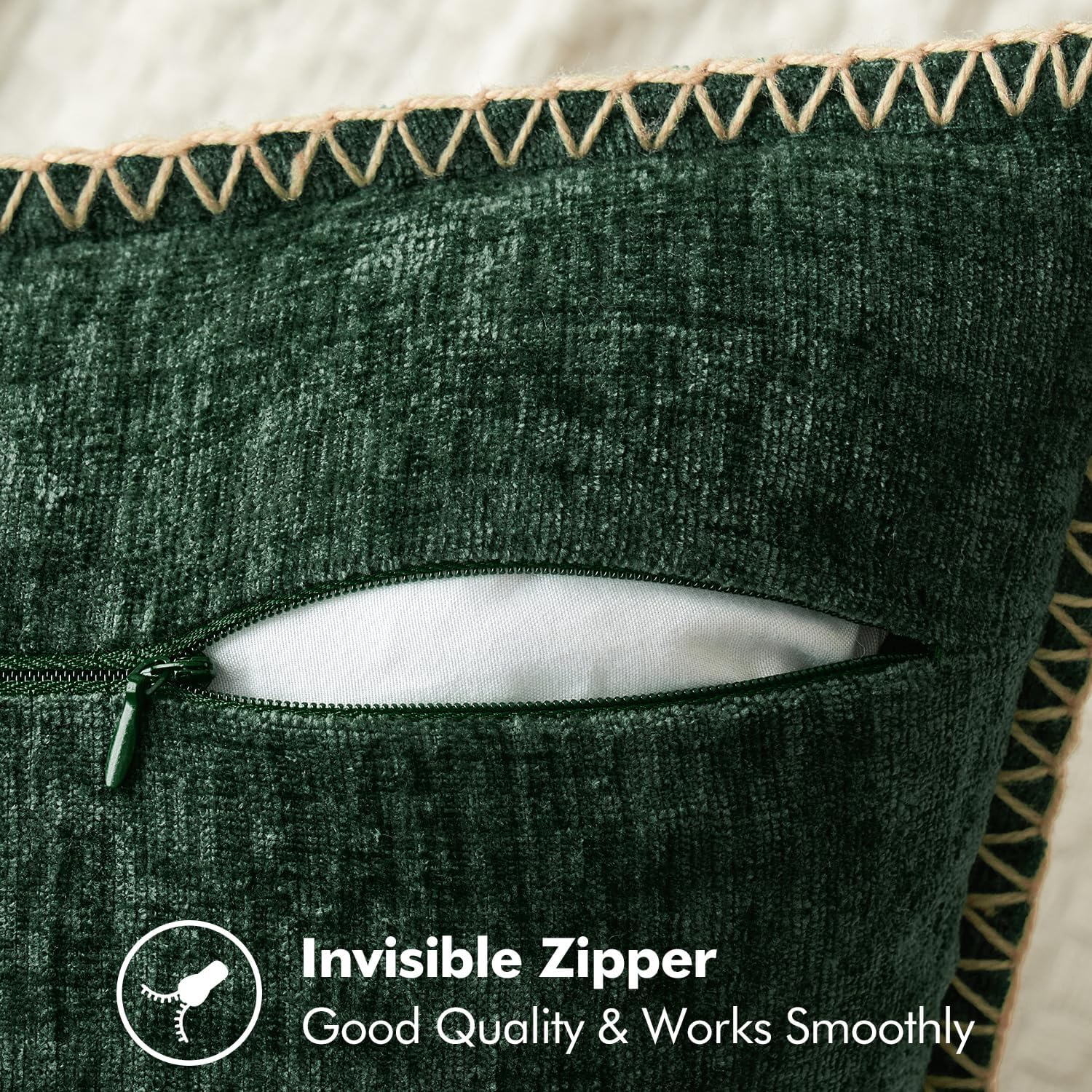 MIULEE Pack of 2 Christmas Pillow Covers 18x18 Inch Dark Green Farmhouse Decorative Throw Pillow Covers with Stitched Edge Soft Chenille Solid Dyed Couch Pillow Covers for Sofa Bed Living Room
