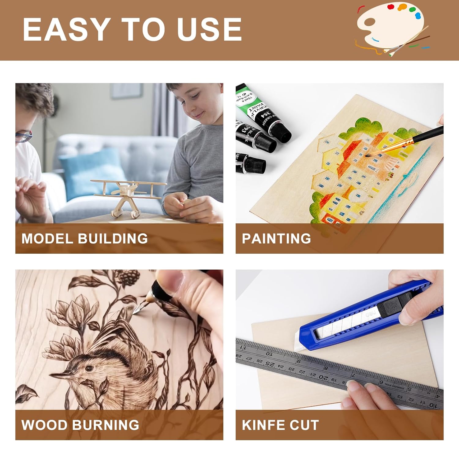 - 【DIY Gifts】High quality thin plywood board make your creations full of fun. We can make gifts during various holidays, such as Children's Day, Valentine's Day, Halloween, Thanksgiving, Christmas, and more. It is also suitable for creating small gifts for gatherings, birthdays, weddings, anniversaries, and more.