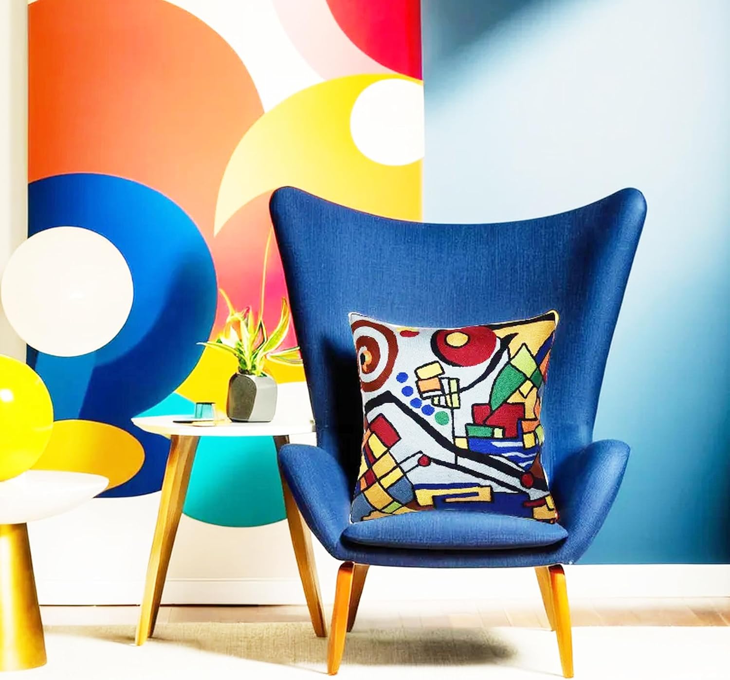 - ❤ Premium Natural Materials: Our soft, all-modern decorative pillows are crafted from premium organic natural materials. The front showcases meticulous hand embroidery using 100% Soft Wool, while the backing features 100% Cotton Canvas. This needlework embroidered accent pillow is incredibly versatile, fitting seamlessly as a mid-century modern pillow or a modern farmhouse pillowcase. Our one-of-a-kind abstract pillows, inspired by Kandinsky, are truly hand-embroidered.