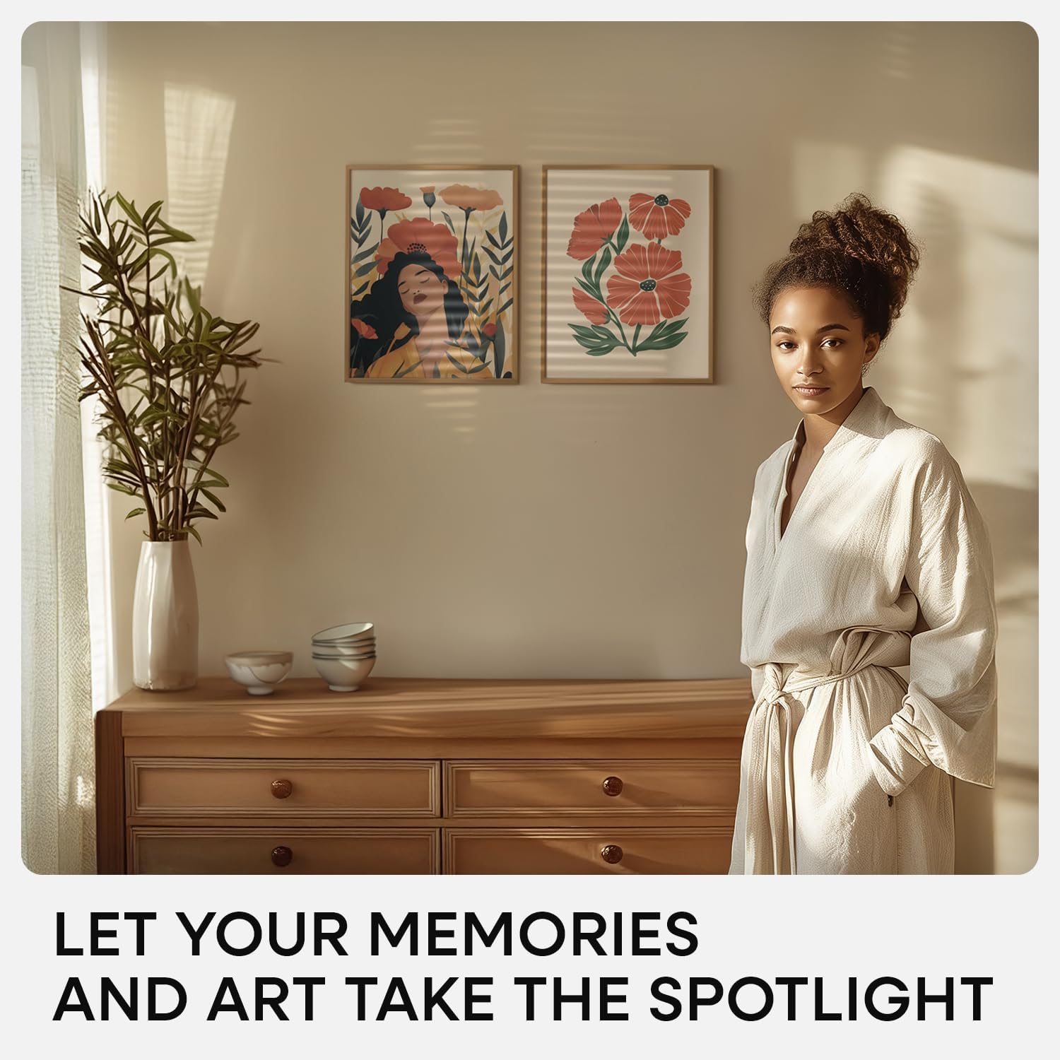 • WARM BRONZE. UNDERSTATED CHARM. Subtle and inviting, the bronze finish has a matte texture that softens light. Ideal for warm-toned photography, botanical prints, and natural materials.