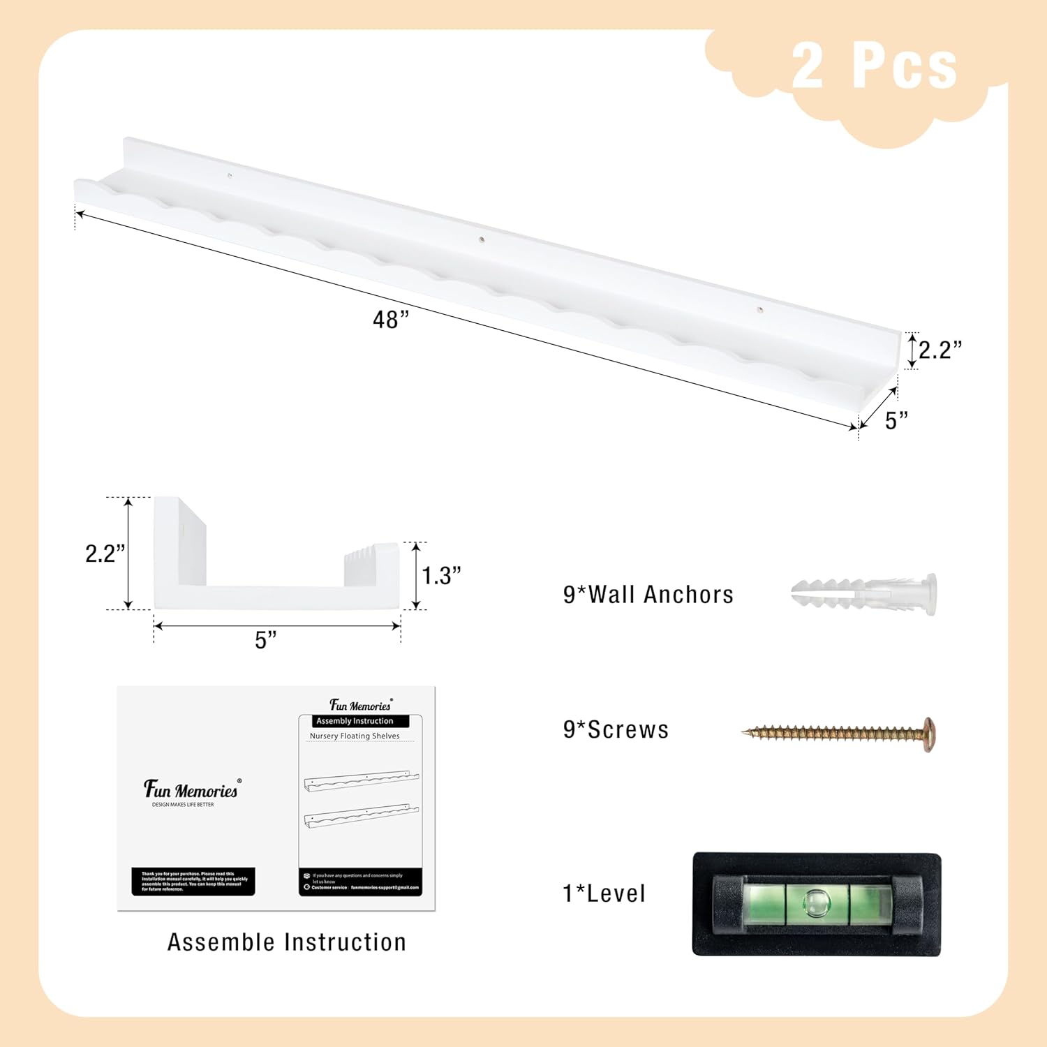 - 【Large Storage Space Nursery Shelves】Enhance your nursery space with these versatile floating ledge shelves. Kids can effortlessly store books, toys, stuffed animals, and games on these wall-mounted shelving units. Each nursery wall shelf measures 48×5×2 inches, and this set includes two packs for added convenience.