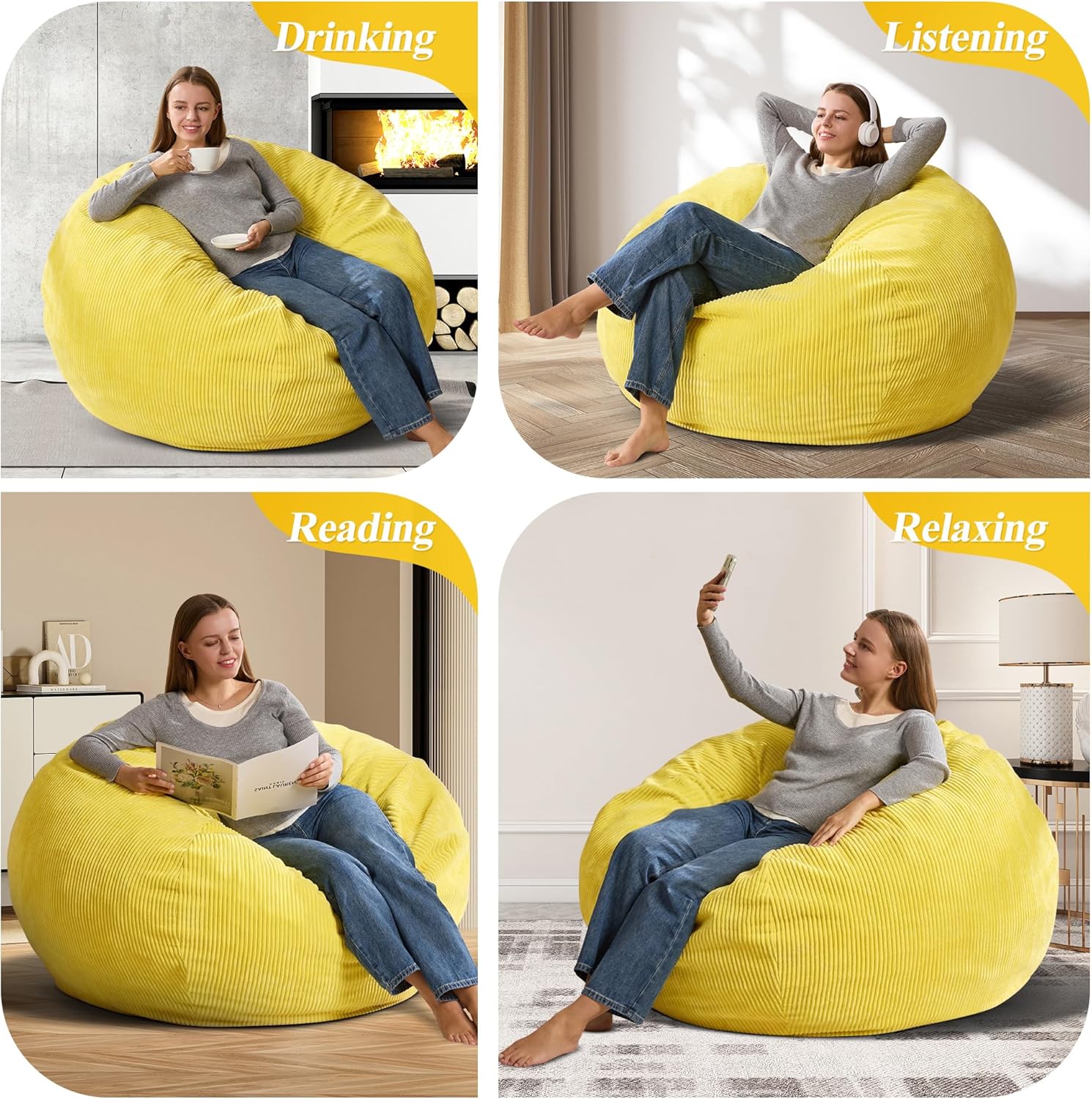 - COMFORTABLE & DURABLE FABRIC: Our bean bag chairs are made of textured corduroy, which is skin-friendly. The cover can be machine washable so that you can clean it like new. The filled memory foam is high-density, which is easily rebound and make you feel relaxed once you lie down or sit on the chairs.