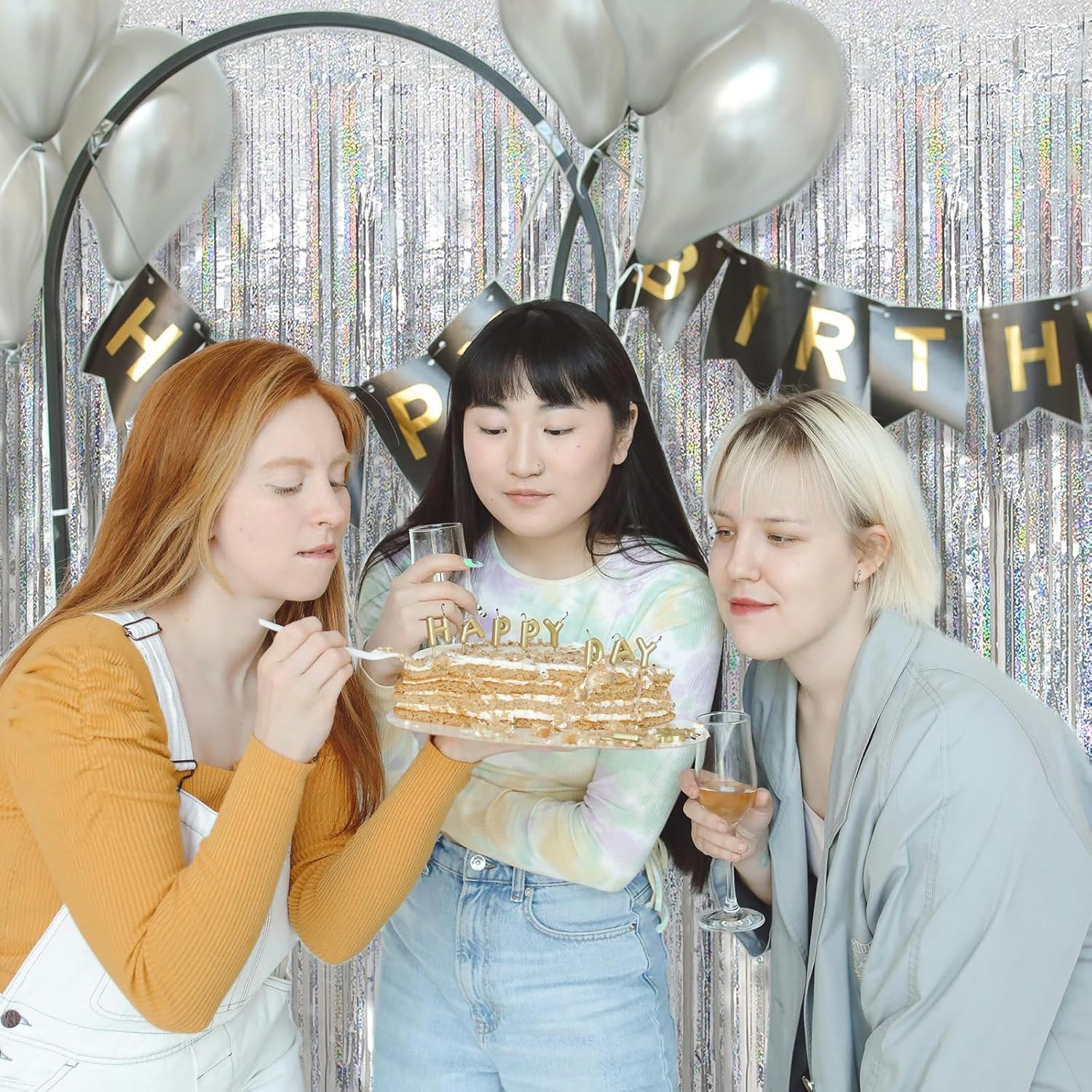 3 Pack Silver Backdrop Curtain Party Decorations Foil Fringe Backdrop Silver Tinsel Streamers Birthday Bachelorette New Year Christmas Wedding Baby Shower Disco Party Decorations