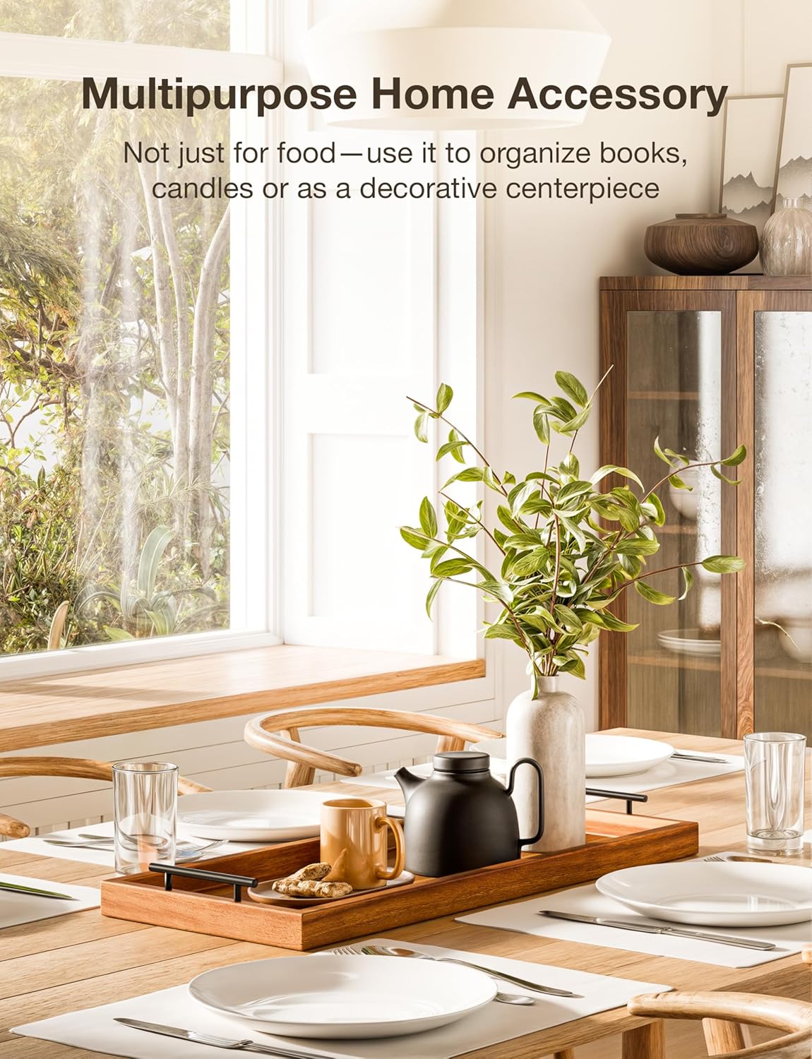 24" Large Charcuterie Tray with Handles, Extra Long Wooden Serving Cheese Boards - Serving Platter for Meat, Party Appetizers, Outdoor & Fruits Display (Acacia Wood)