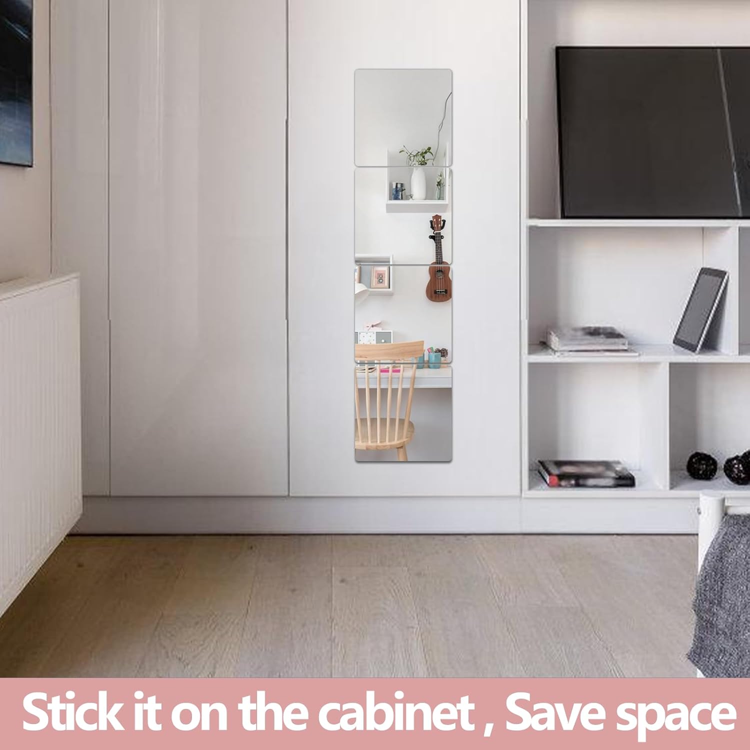 Unbreakable Wall Mirror Full Length,Over the Door Mirror for Bedroom,4Pcs 10inchx10inch Acrylic Mirror Kids,Shatterproof Plexiglass Long Mirrors,Children Non Glass Stick on Mirrors Tiles self adhesive