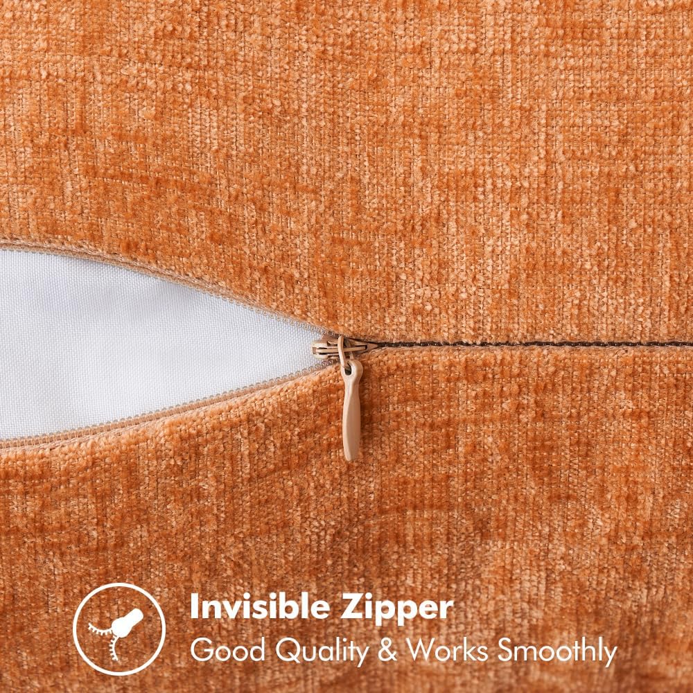 MIULEE Pack of 2 Fall Couch Throw Pillow Covers 18x18 Inch Orange Farmhouse Decorative Pillow Covers with Stitched Edge Soft Chenille Solid Dyed Pillow Covers for Sofa Bed Living Room