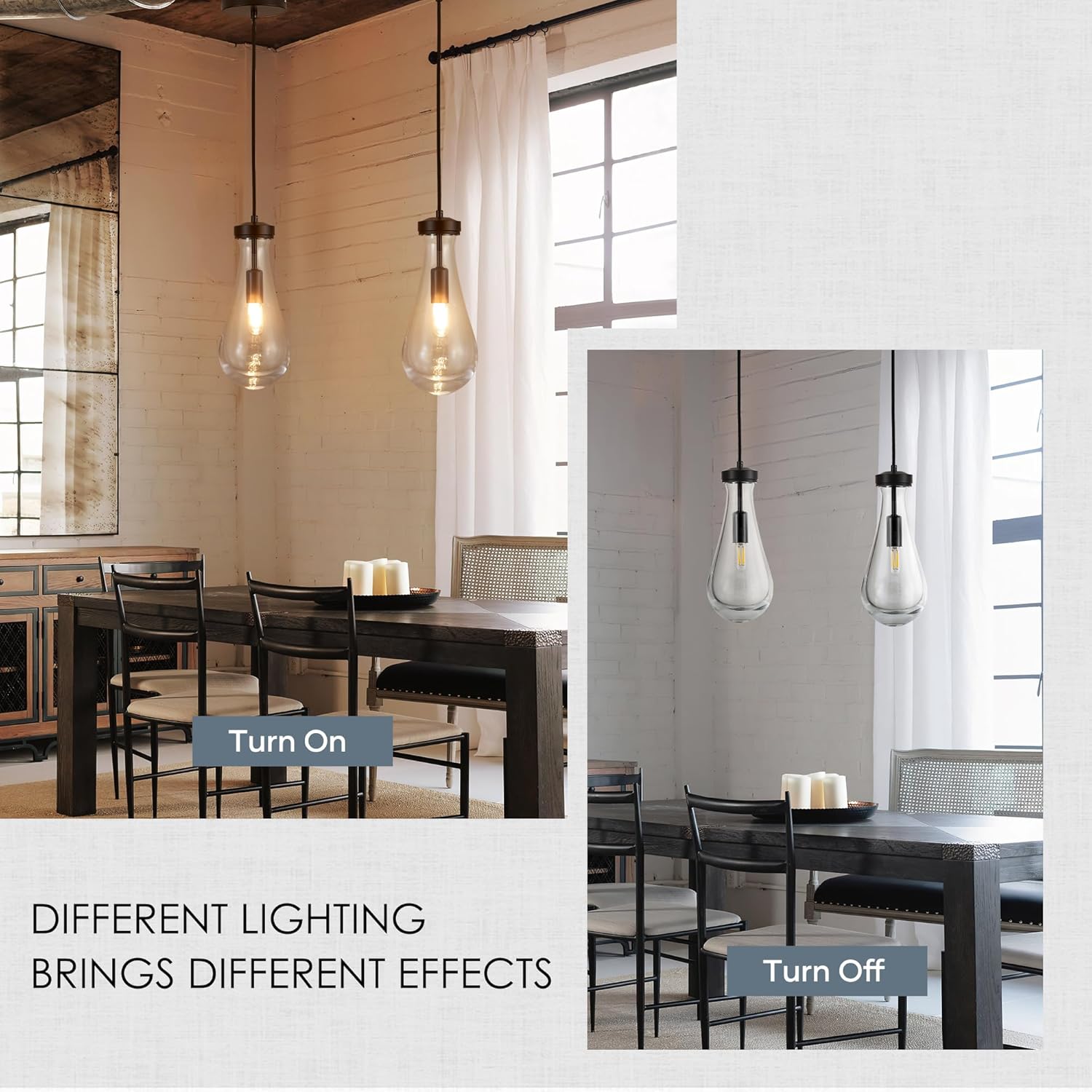 - 【Raindrop Design】This raindrop pendant light features a unique and captivating design that combines modernity with the beauty of nature. The handmade, mouth-blown glass shade resembles raindrops, creating a stunning light effect that enhances any space. Whether you prefer a modern or vintage farmhouse style, these pendant lights effortlessly blend in while illuminating your room with a bright and decorative ambiance.