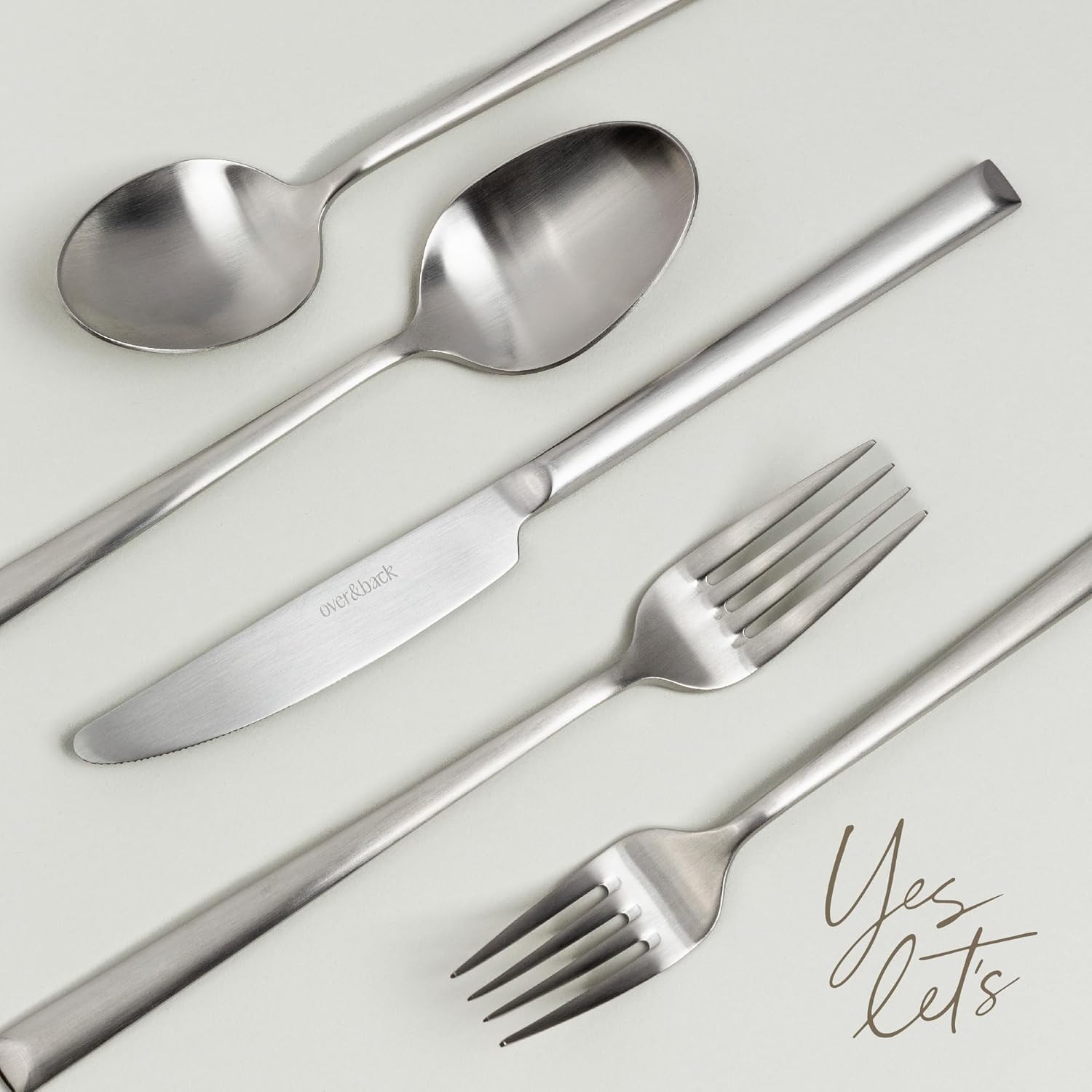 over&back 20pc Modern Flatware Cutlery Set - Comes with 4 Dinner Forks, 4 Salad Forks, 4 Dinner Knives, 4 Dinner Spoons, and 4 Teaspoons - 18/8 Stainless Steel - Dishwasher-Safe - Brushed Stainless