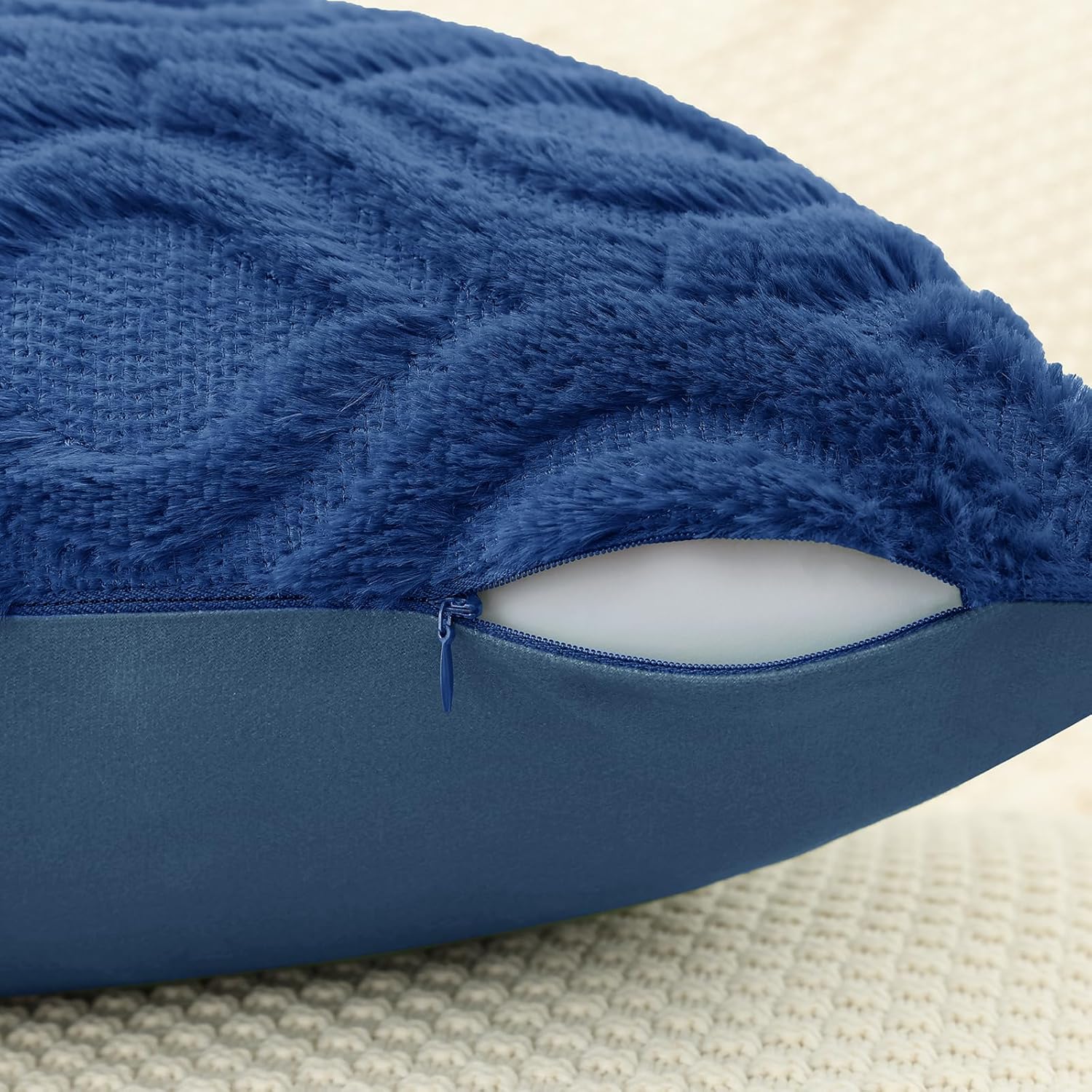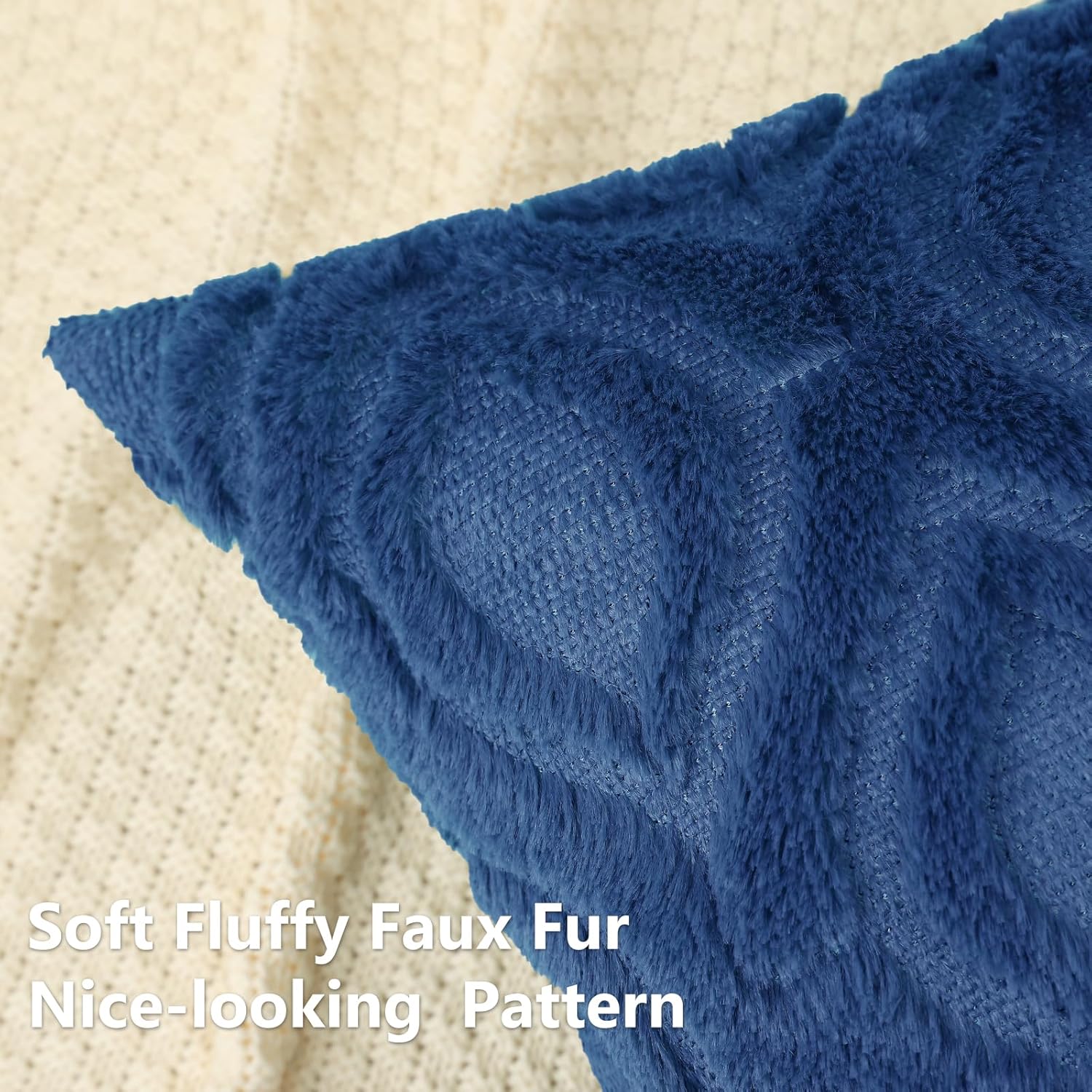 decorUhome Fall Throw Pillow Covers 12x20 Inch Set of 2, Soft Plush Decorative Faux Fur Dark Blue Solid Couch Pillow Covers, Accent Farmhouse Neutral Lumbar Euro Pillow Cases for Sofa Bed Living Room