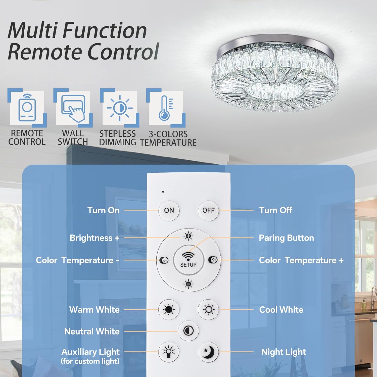 - Package Included: 1x round crystal chandelier, 1x remote, 1x mounting accessories bag and 1x installation instructions for quick and easy installation.
