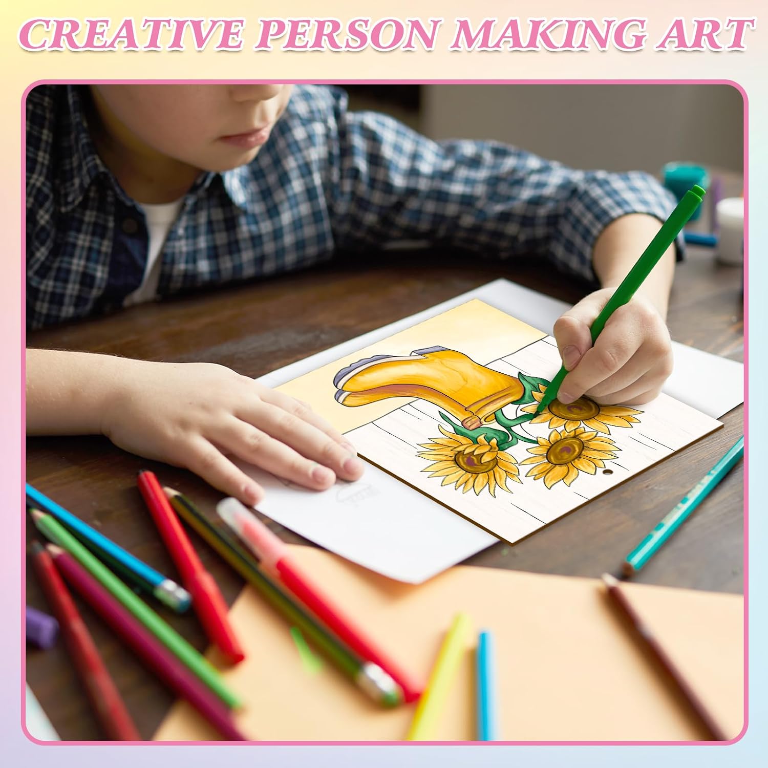 - Large Unique Summer Sunflowers Wooden Crafts To Paint - These unfinished woods come with sunflower elements laser carving line drafts. Sufficient quantity, and suitable size for you to use on DIY craft projects, you can also share them with your friends.