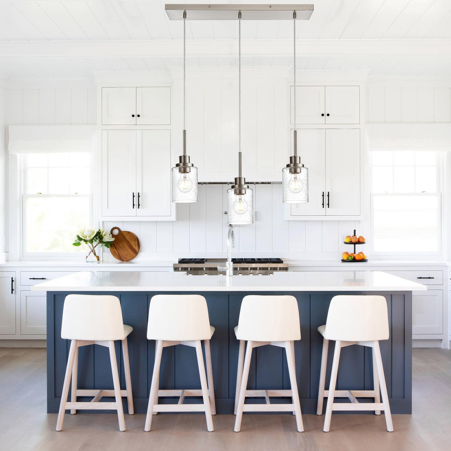 - Elegant Modern Design: This 3-light linear chandelier combines a sleek, industrial look with farmhouse charm. The clear seeded glass shades and clean lines create a sophisticated and versatile lighting solution perfect for any modern or transitional decor.