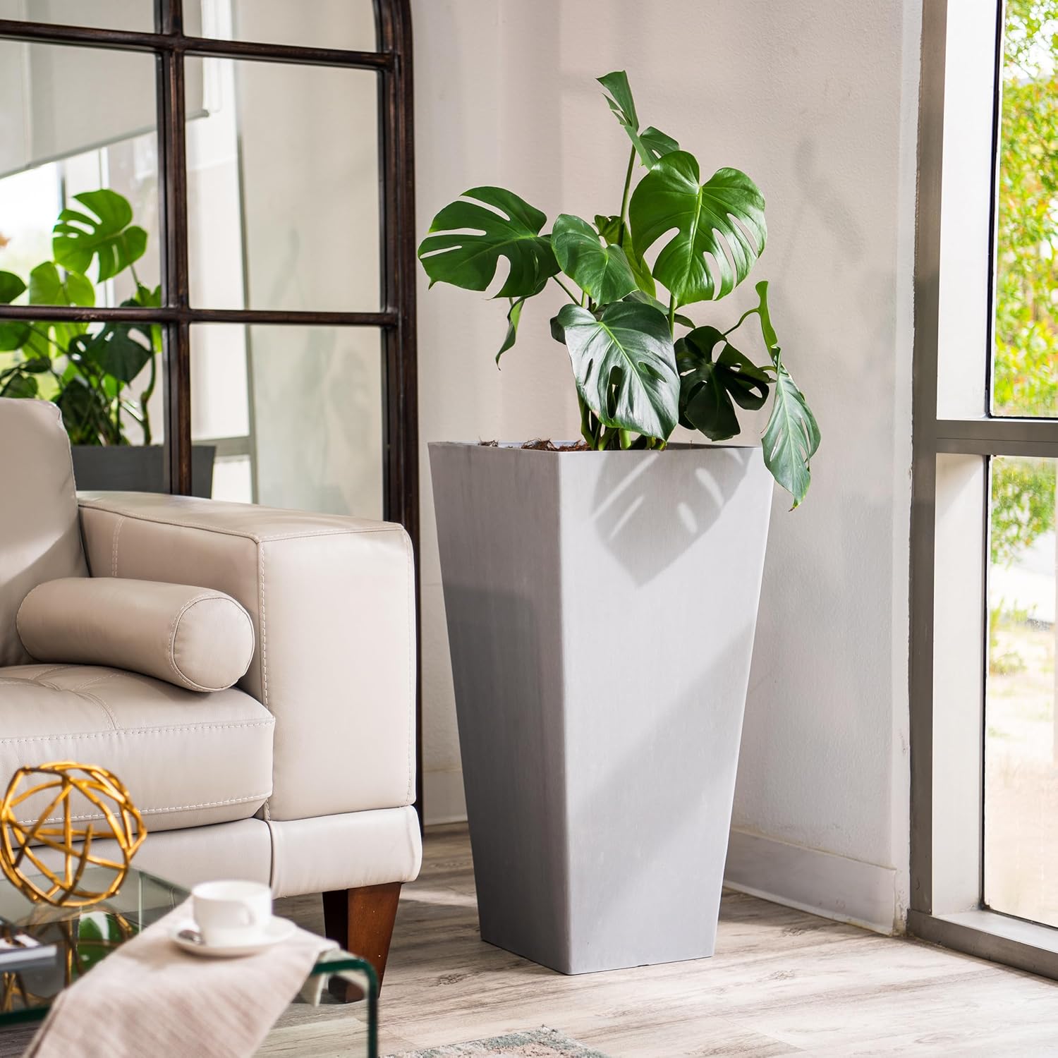 - LARGE AND VERSATILE: The large size of these tapered square planters (measuring 15.2 in. x 15.2 in. wide and 30 in. tall and weight of 20.4 pounds, each), makes this set of two same sized planters ideal for accommodating bigger plants and adding a bold and impressive presence to your indoor or outdoor space.