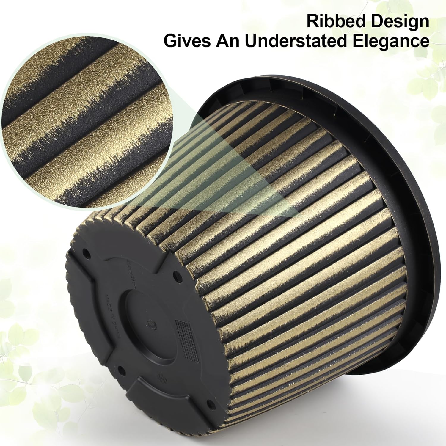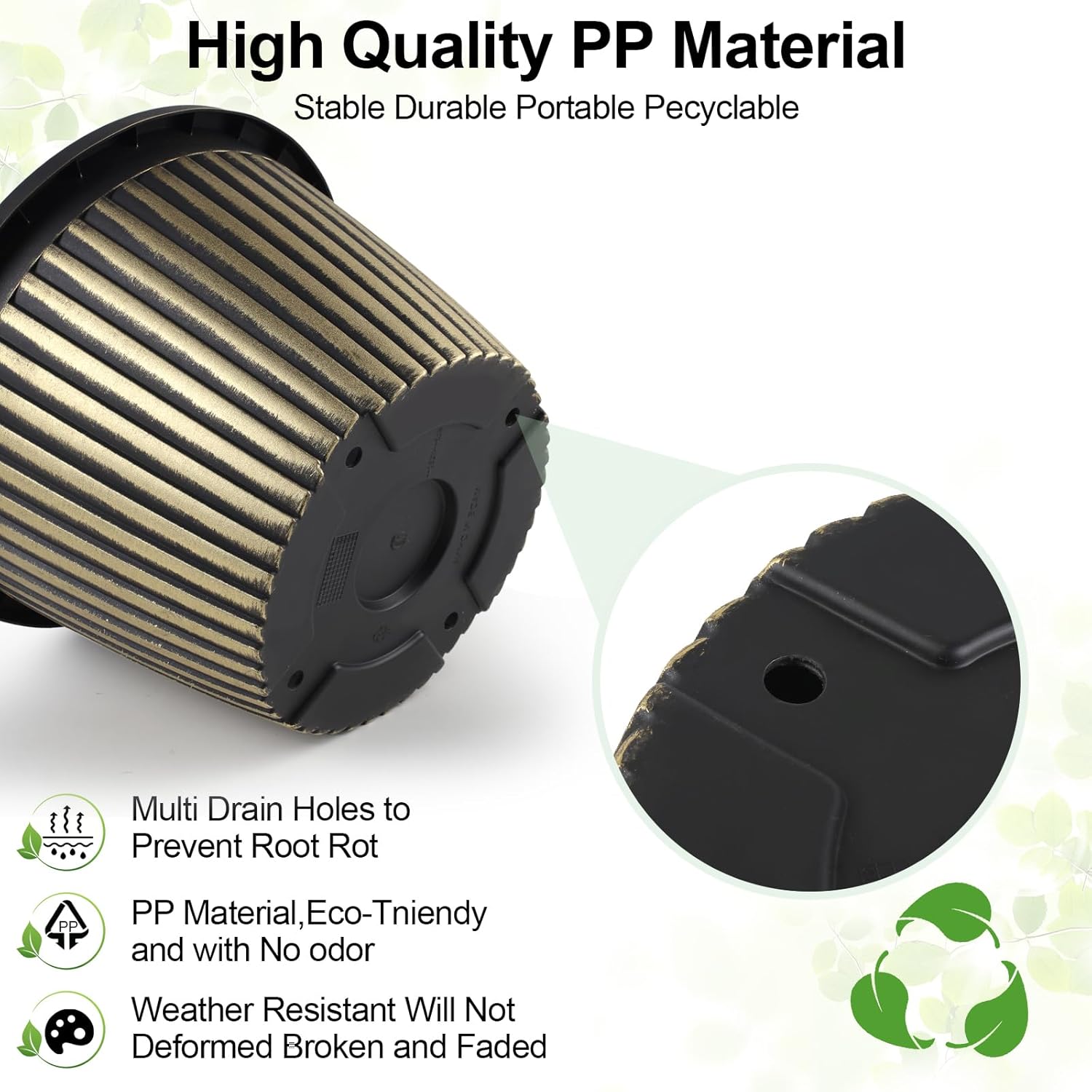- 【MODERN STYLE PLANTERS】 Indoor planters with saucers provide a unique,nice style in ribbed design which gives an understated elegance that will enhance the beauty of your plant. These 14 inch plant pots are available in red-brown &blue-green & gold finished with a black antique stain. Plastic flower pots would be a beautiful addition to anyone’s deck or sunroom or house!