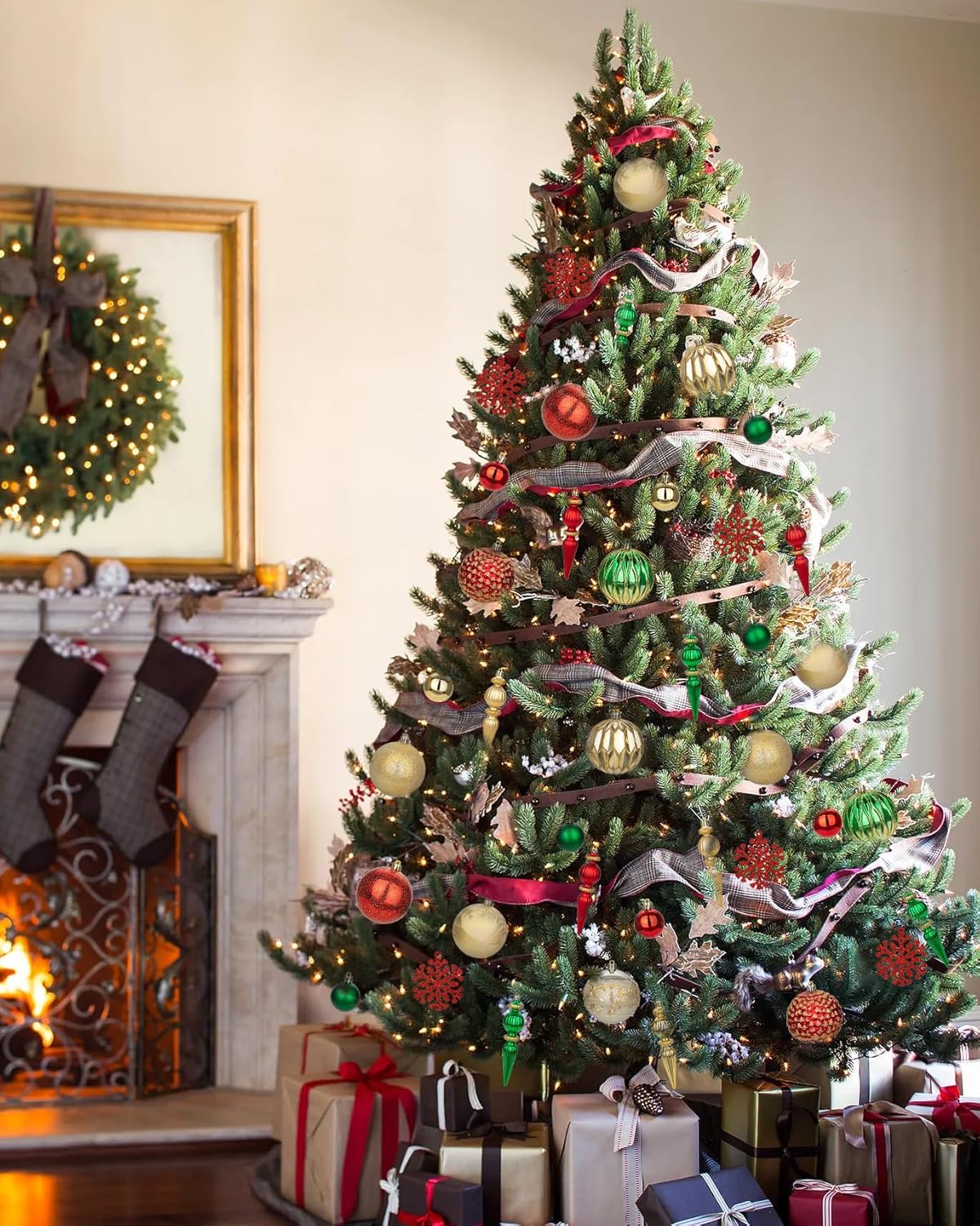 - COMPLETE 92-PIECE SET – Each Christmas ornament set includes 92 carefully selected pieces in various sizes and designs, including classic round balls, intricate finials, glittery snowflakes, and mini baubles. This complete collection allows you to decorate your entire Christmas tree with a perfectly coordinated look