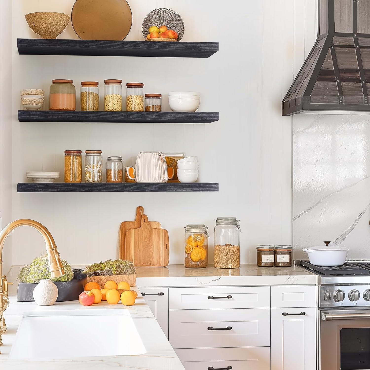 - 𝐒𝐩𝐚𝐜𝐢𝐨𝐮𝐬 & 𝐅𝐮𝐧𝐜𝐭𝐢𝐨𝐧𝐚𝐥 𝐒𝐢𝐳𝐞 – At 𝟑𝟔 𝐢𝐧𝐜𝐡𝐞𝐬 𝐥𝐨𝐧𝐠, these shelves 𝐩𝐫𝐨𝐯𝐢𝐝𝐞 𝐚𝐦𝐩𝐥𝐞 𝐬𝐩𝐚𝐜𝐞 𝐟𝐨𝐫 𝐨𝐫𝐠𝐚𝐧𝐢𝐳𝐢𝐧𝐠 𝐨𝐫 𝐬𝐡𝐨𝐰𝐜𝐚𝐬𝐢𝐧𝐠 𝐢𝐭𝐞𝐦𝐬 𝐰𝐢𝐭𝐡𝐨𝐮𝐭 𝐜𝐫𝐨𝐰𝐝𝐢𝐧𝐠 𝐲𝐨𝐮𝐫 𝐰𝐚𝐥𝐥. Perfect for displaying essentials or decorative accents