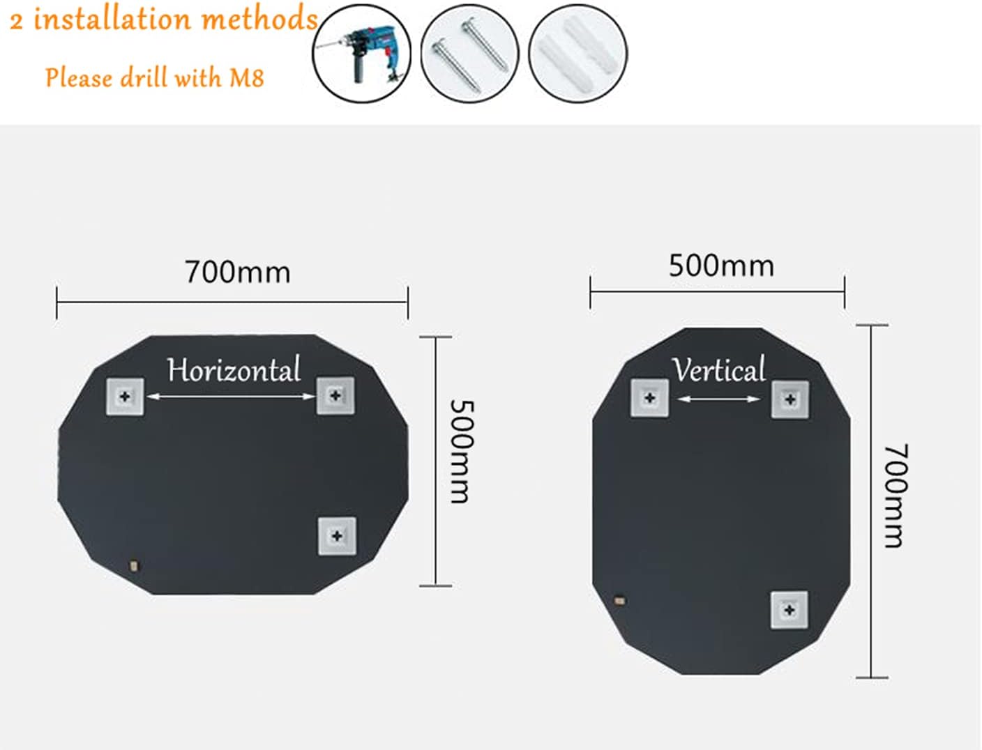 - Copper-free silver mirror, environmentally friendly, much less corrosion rate compared with normal silver mirrors used by most brands, hanging both horizontally and vertically