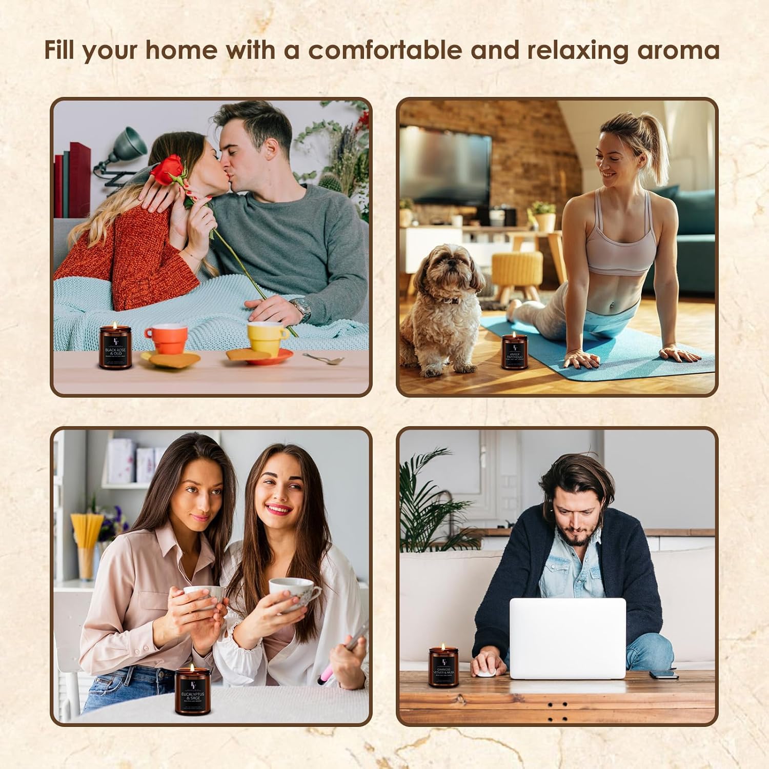 Scented Candles Set, Candles for Home Scented Soy Wax Candle, 4 Pack 28 Oz Aromatherapy Candles Gift Set for Women Men (Patchouli/Vetiver/Sage/Rose)