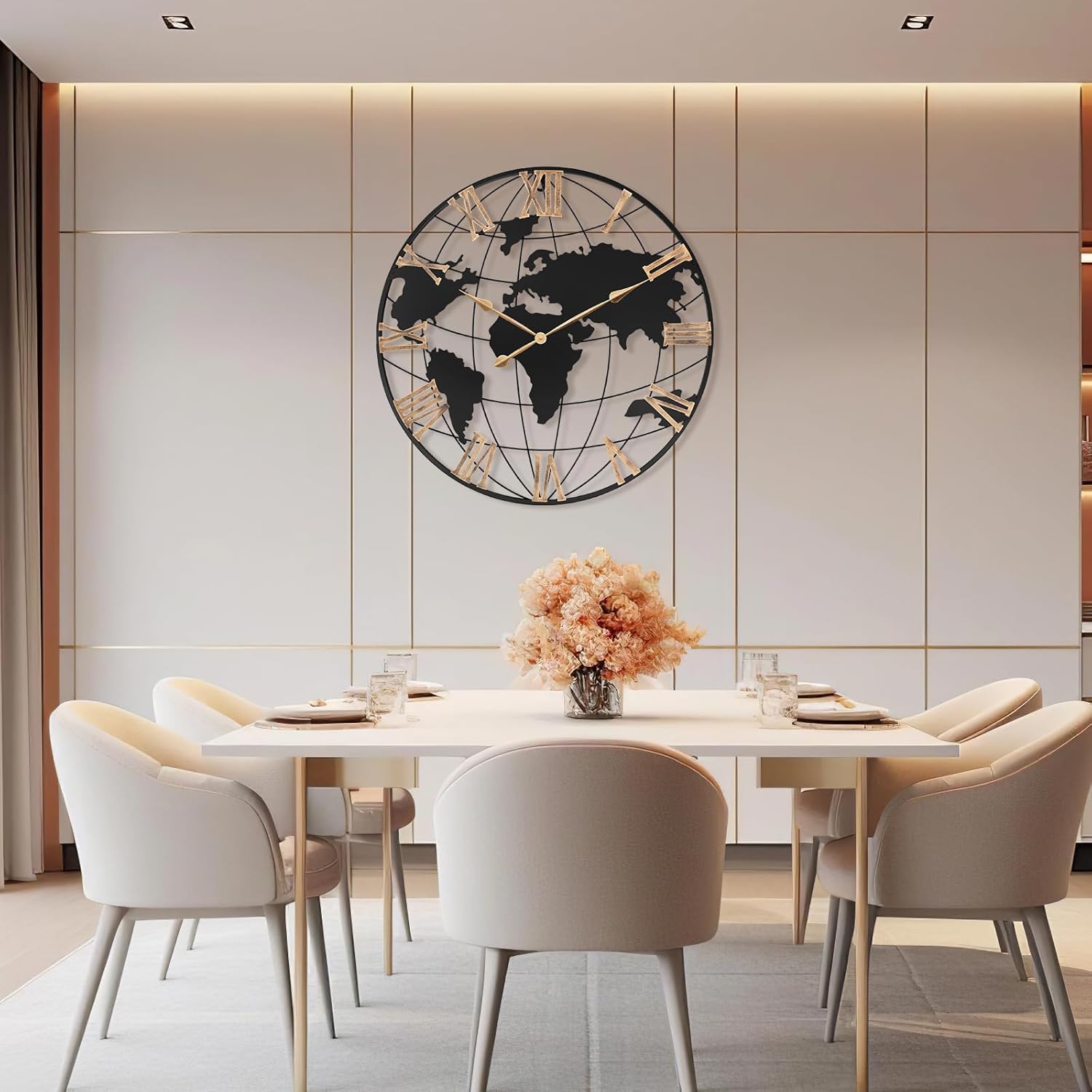 - 【Aesthetic World Map Design Concept】To craft a visually stunning and captivating 36 inch large world map wall clock,we incorporated geographical latitude longitude lines and continental tectonic plates into our design concept,aiming to convey the Earth's natural beauty through metal lines and forms:It’s not only a piece of exquisite artistic elegance but also an artwork with educational value.
