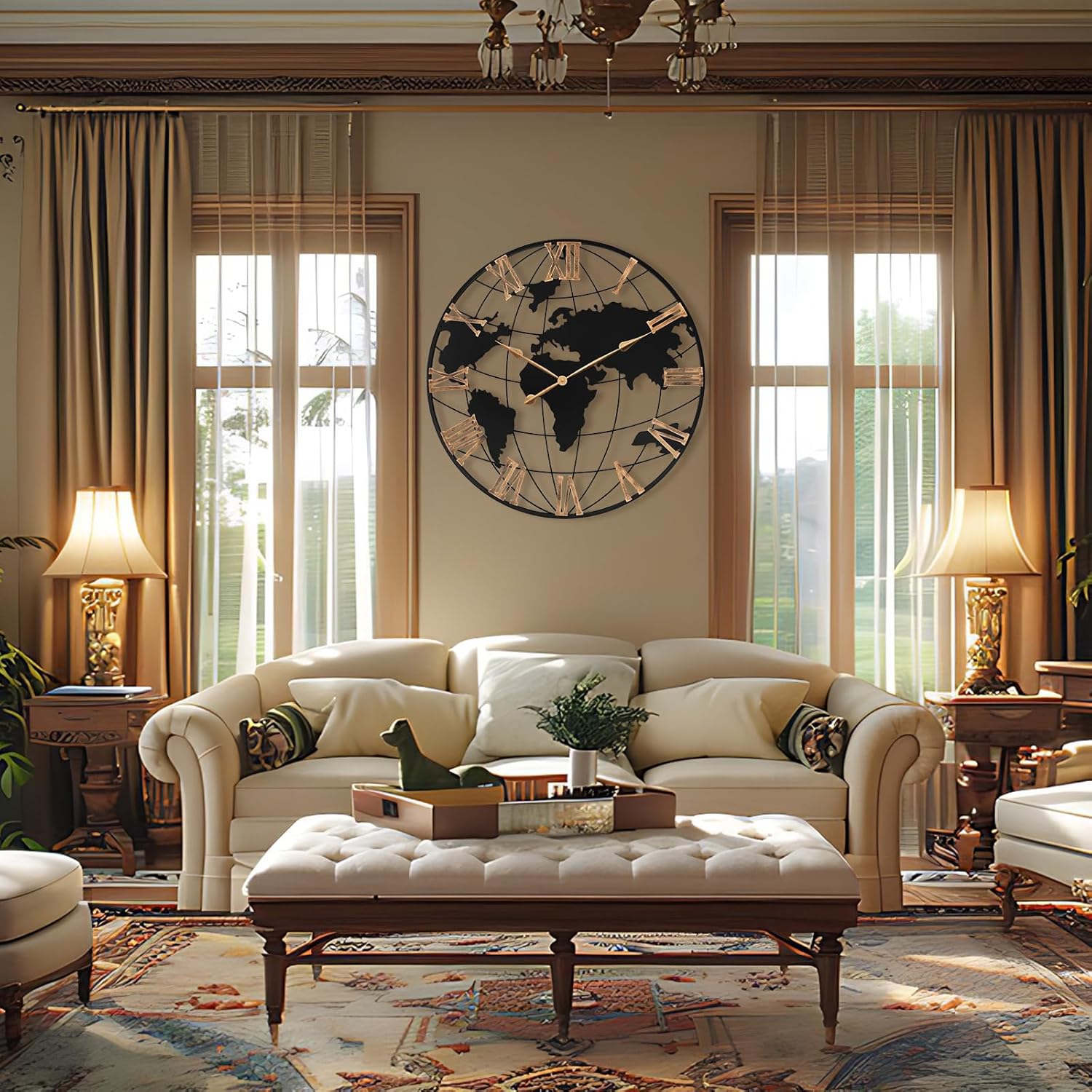 - 【Primary Focus of The Living Room】Pytha Sight 30 inch world maps wall clock is a stunning piece,sure to captivate your guests:It fits perfectly above fireplaces,and the vintage gold roman numerals with classical vintage pointers help you read the numbers more:Our beautiful large wall clocks complements your living room decor,adding an elegant touch to your home;With its impressive large wall clock 36 inches or larger,this giant oversized wall clock is a perfect size for any room, and it has become a conversation starter whenever guests visit.