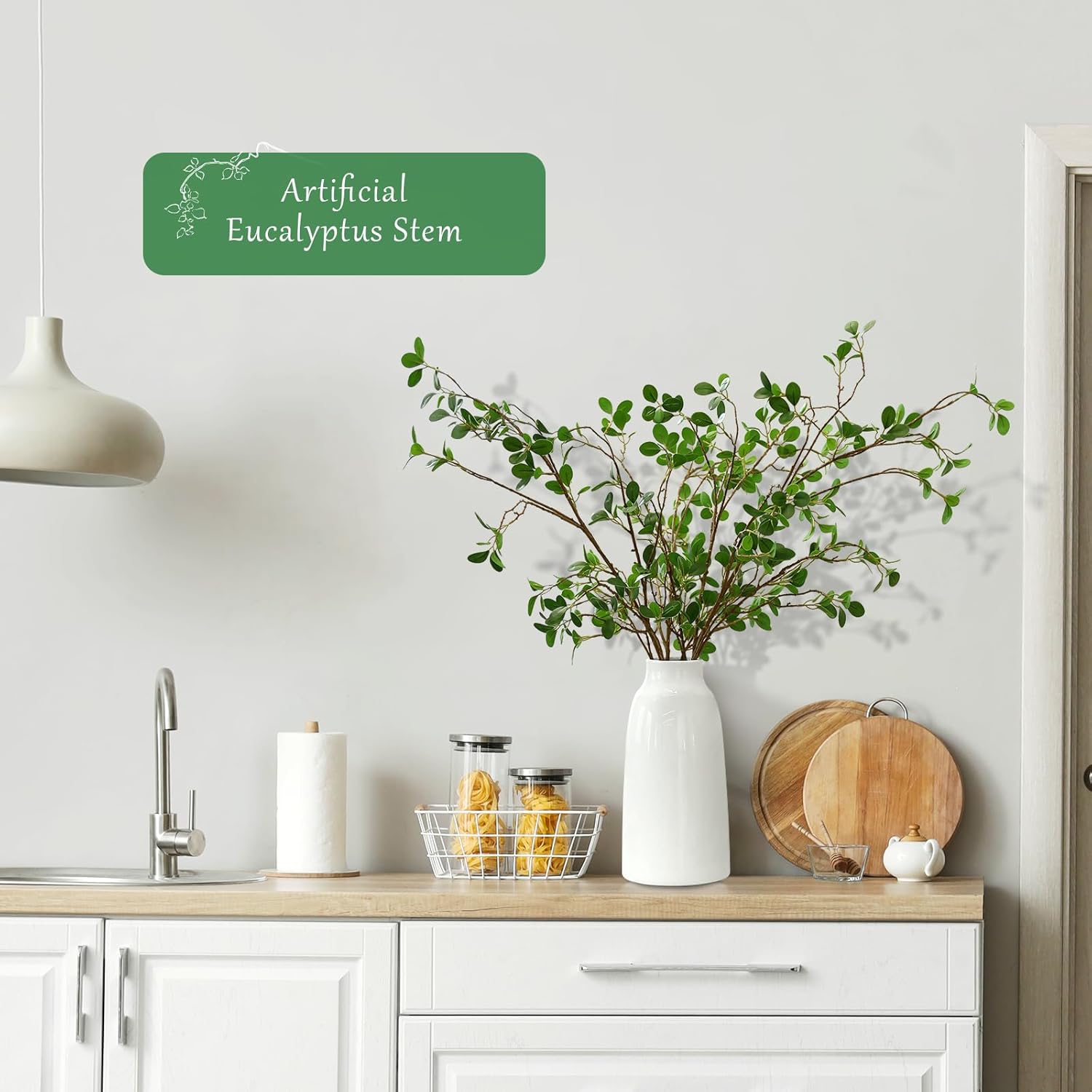 ucky Artificial Realistic Eucalyptus Stems,Decoration Greenery Stems ,43 Inch 4 Pcs, Realistic Touch Flexible Branches, Green Fake Plant, for Home Decor Tables Vases Garden Decoration