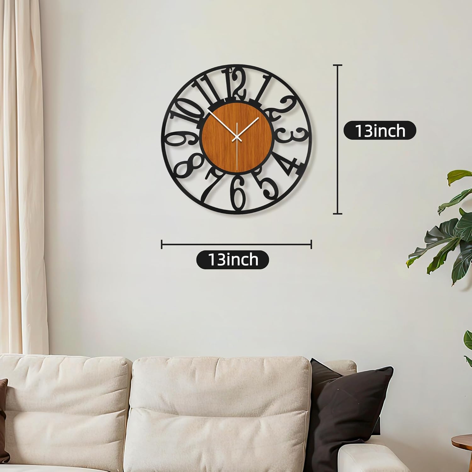 - Modern Designļ¼wall clock is designed with a combination of black walnut color wood veneer and black Arabic numerals. It is suitable for most American style and modern decoration, perfect to decorate your house.