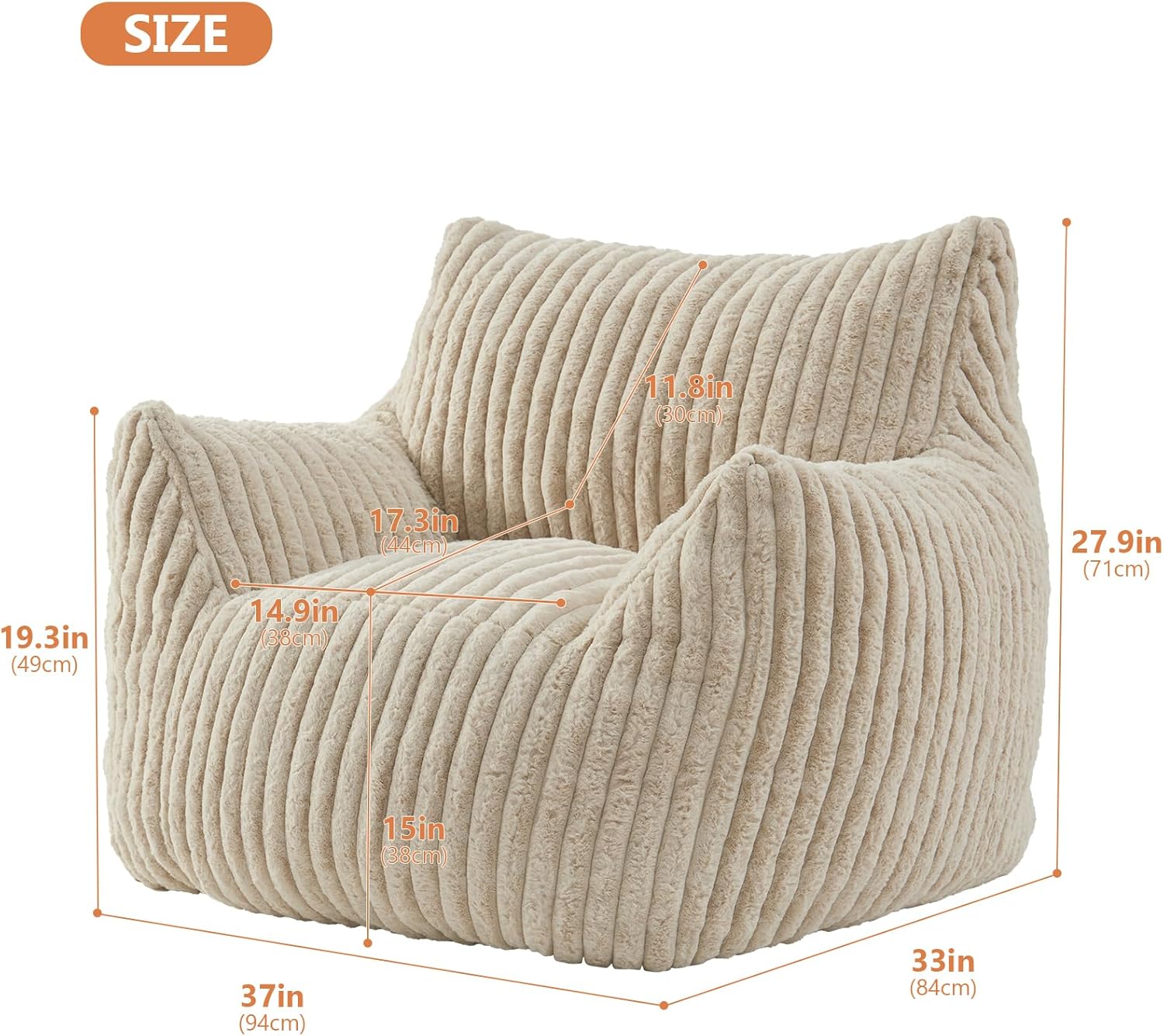 Giant Bean Bag Chairs for Adults with Filling Plush Fluffy Bean Bag Chairs for Teens with Armrests Comfy BeanBag Lazy Couch Sofa Chair for Bedroom Living Room Reading