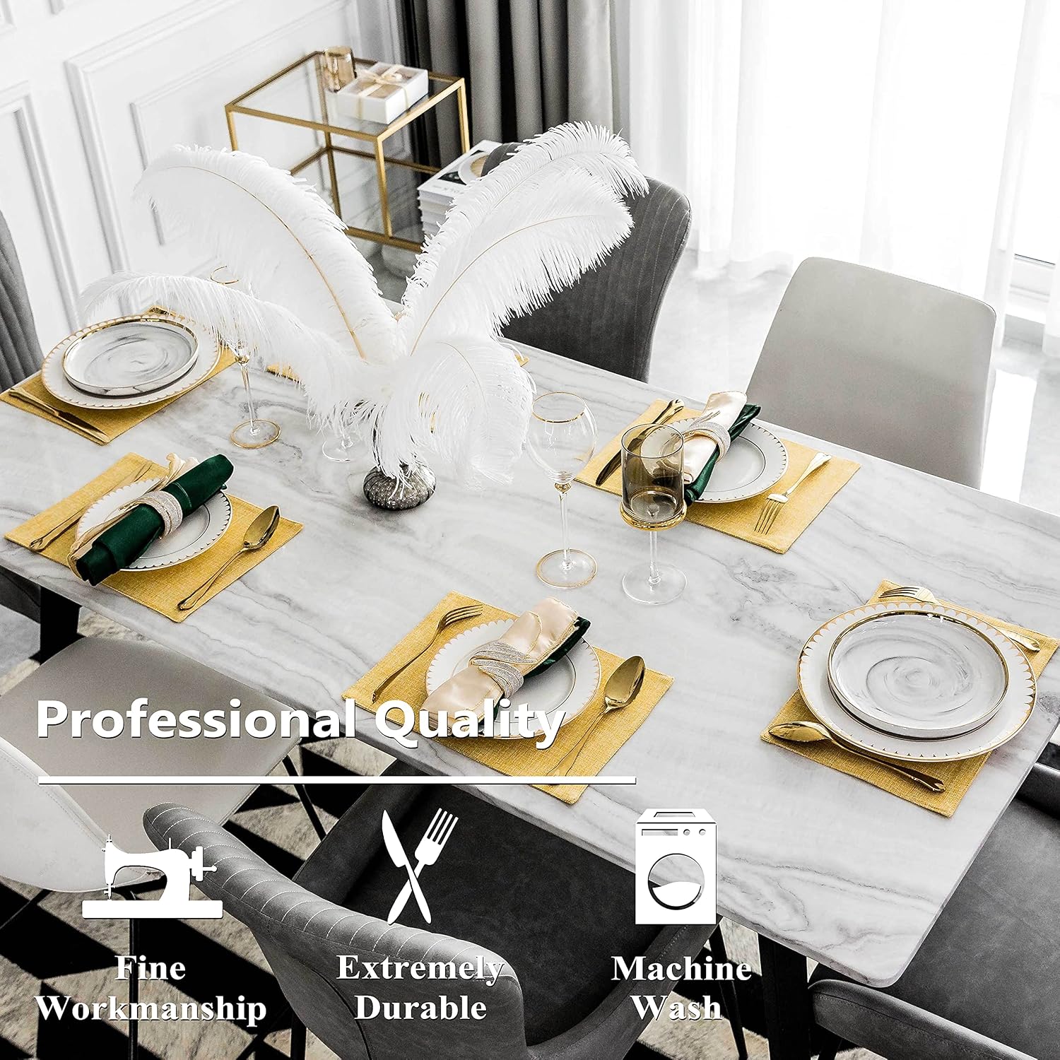 - Washing Instruction: Machine washable placemats, Wash placemat separately from other articles, gentle circle in low. No bleach. Iron to get risk of the crease.