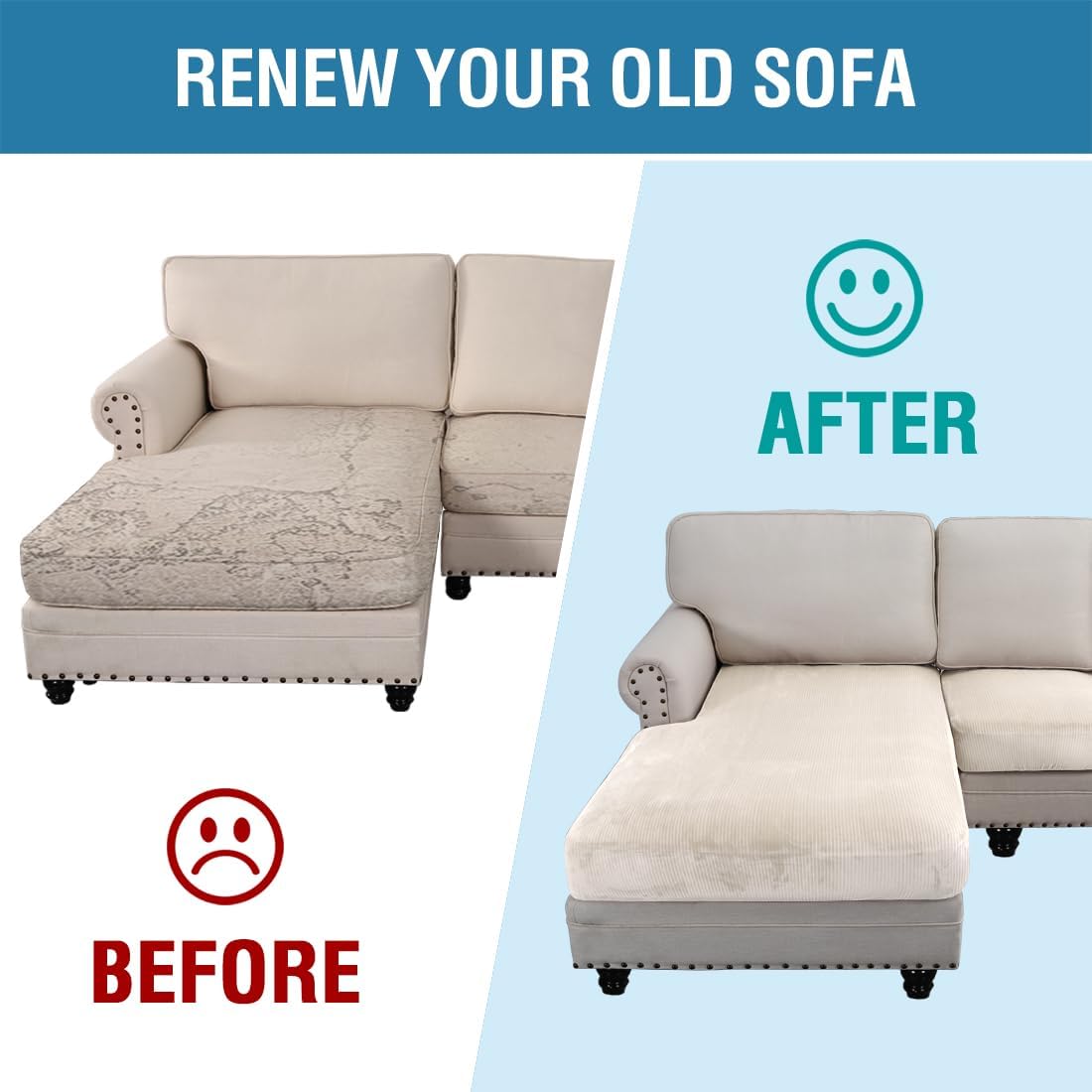 - INCREDIBLY COMFORTABLE VELVET: Products passed GLOBAL RECYCLED STANDARD certificate.This innovated stretch sofa slipcovers are constructed with 3 PIECES,including 1 Chaise cover and 2 individual cushion covers. Crafted from luxurious velvet plush fabric with unique striped cuts, feature thick, soft, smooth, anti-wrinkle, no fading, durable as well as highly stretch. Protect your cushion furniture from daily wears and tears, stains, kids, scratches from pet claws, dogs or accidental spills